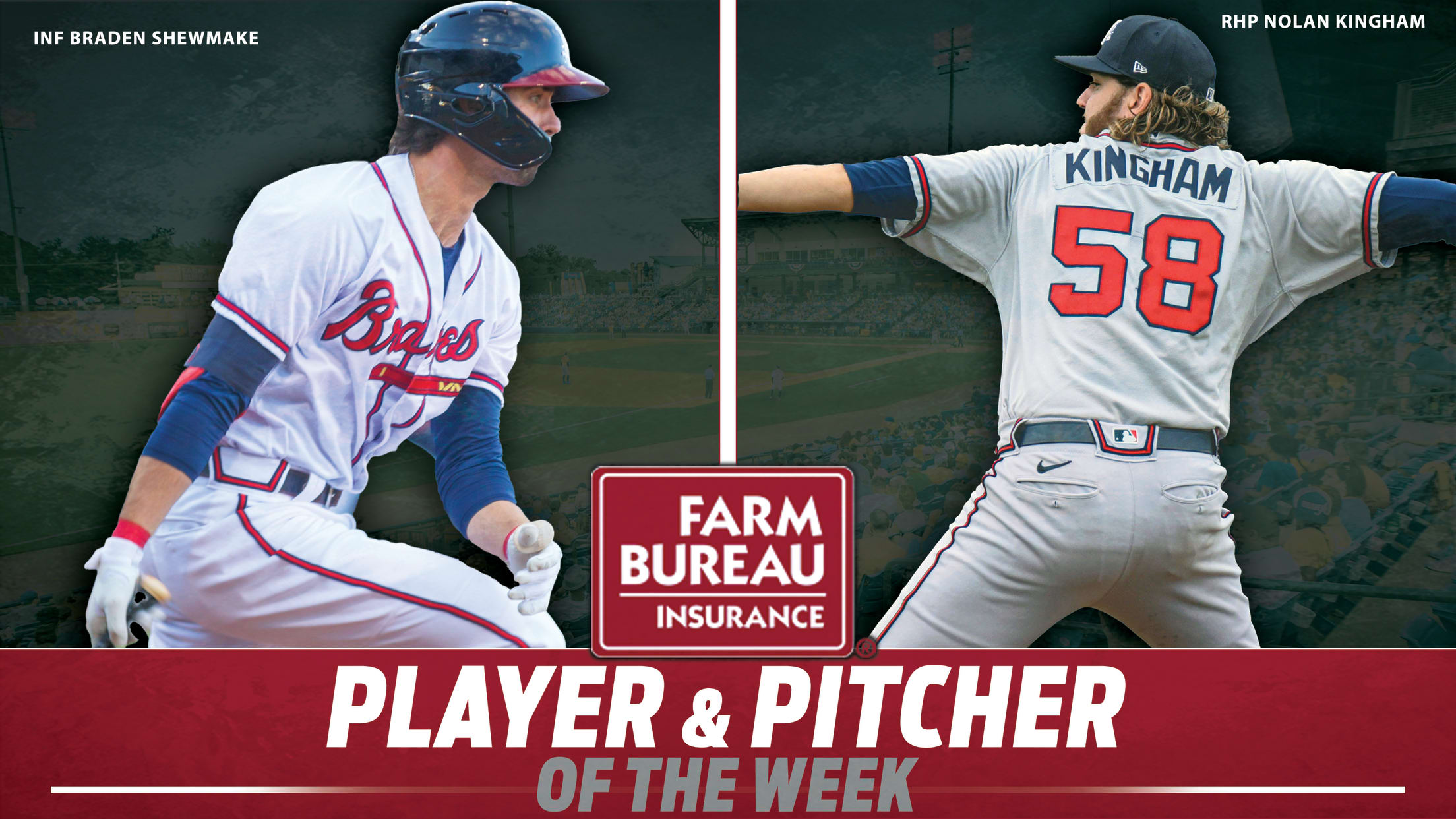 PEARL, MS - The Mississippi Braves and Farm Bureau and excited to announce that outfielder Braden Shewmake and pitcher Nolan Kingham are the Farm Bureau Pitcher and Player of the Week.