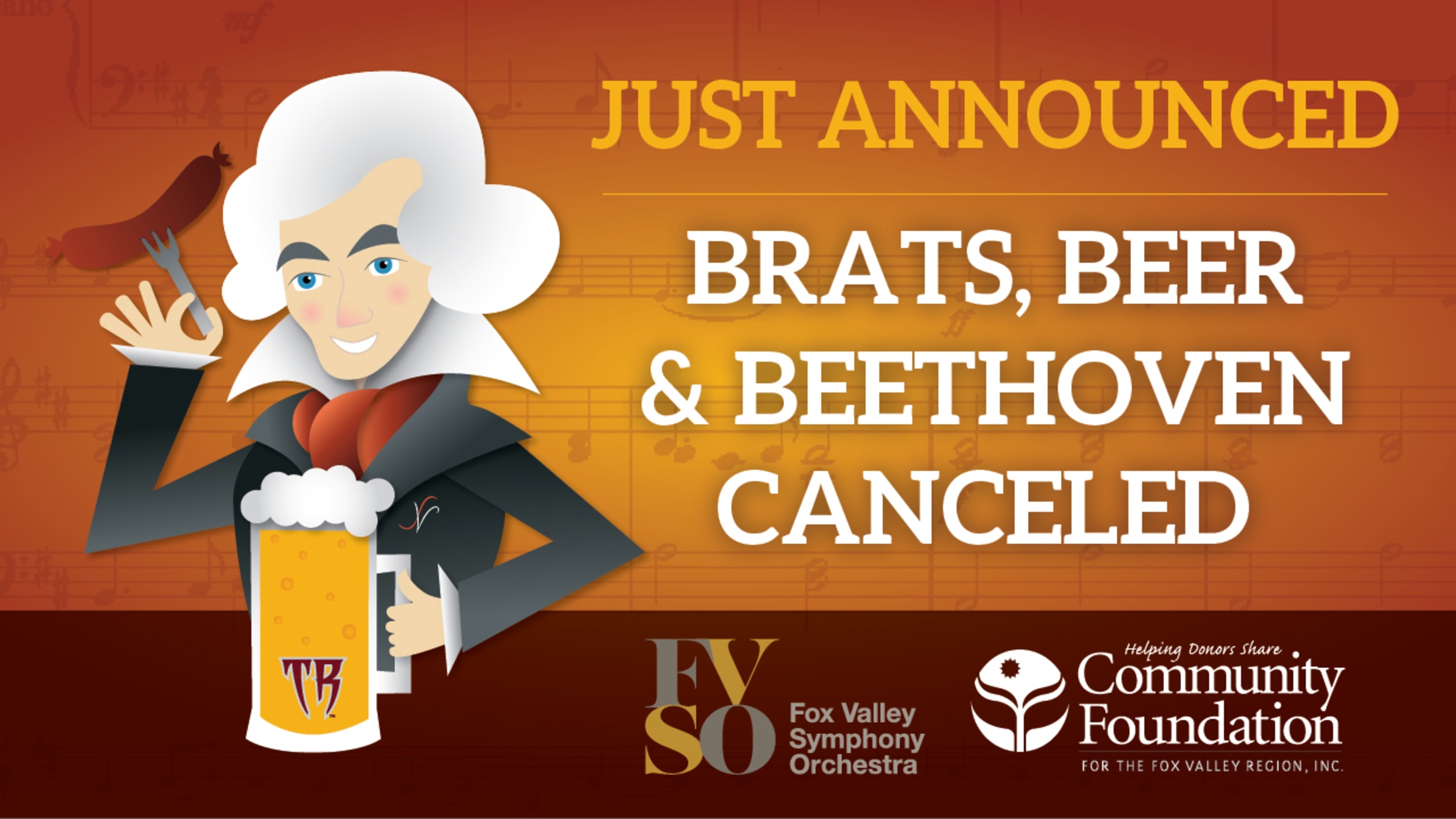 GRAND CHUTE, WI – The Fox Valley Symphony Orchestra has made the difficult decision to cancel the 2020 Brats, Beer, & Beethoven event. The sixth edition of this popular, free event was to be held on Friday, July 10 at Neuroscience Group Field at Fox Cities Stadium.