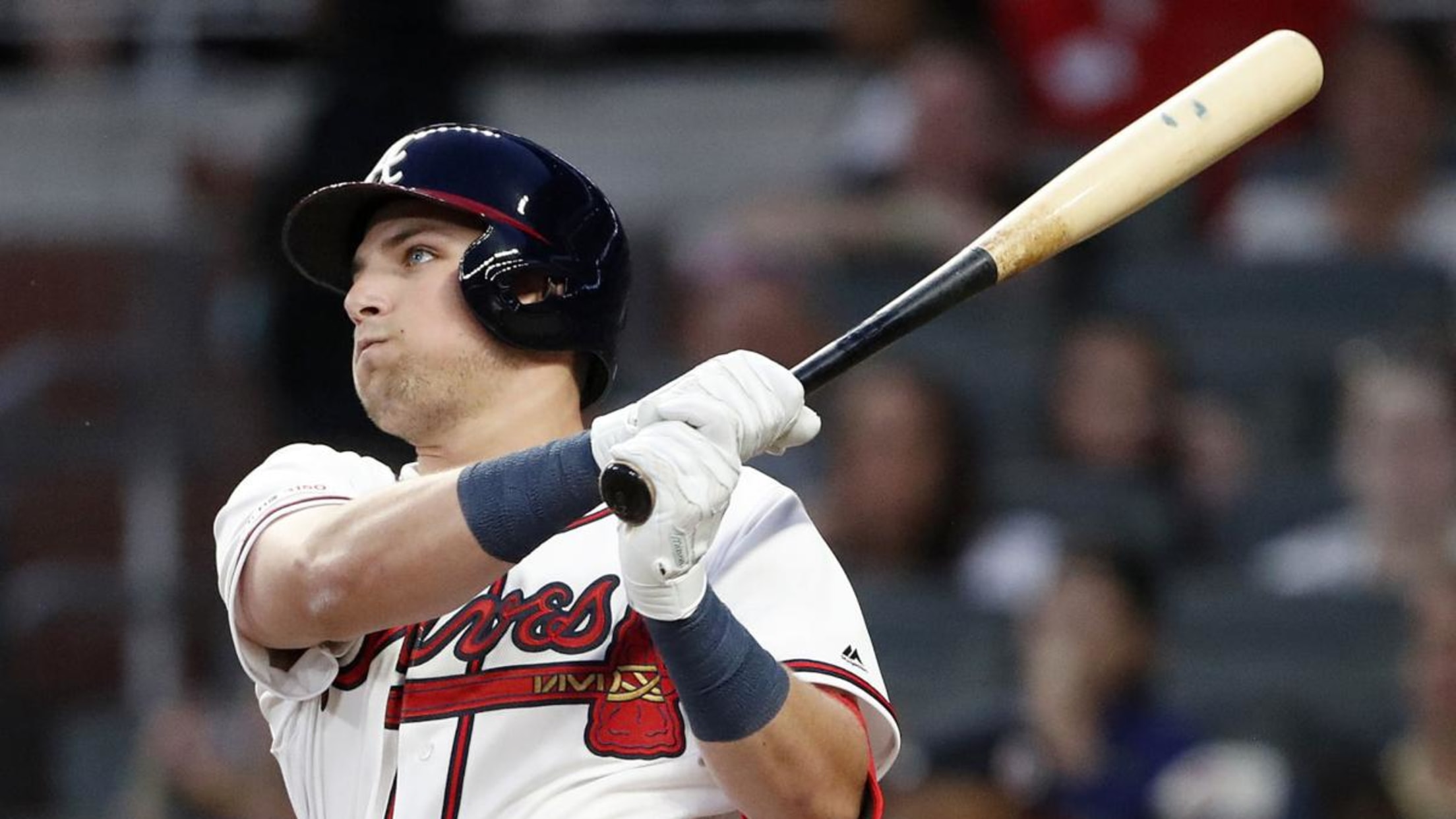 Riley stirred the home crowd when he flied out to center field in the sixth. The 22-year-old homered in 10 of his last 50 at-bats recorded for Triple-A Gwinnett before he was promoted.