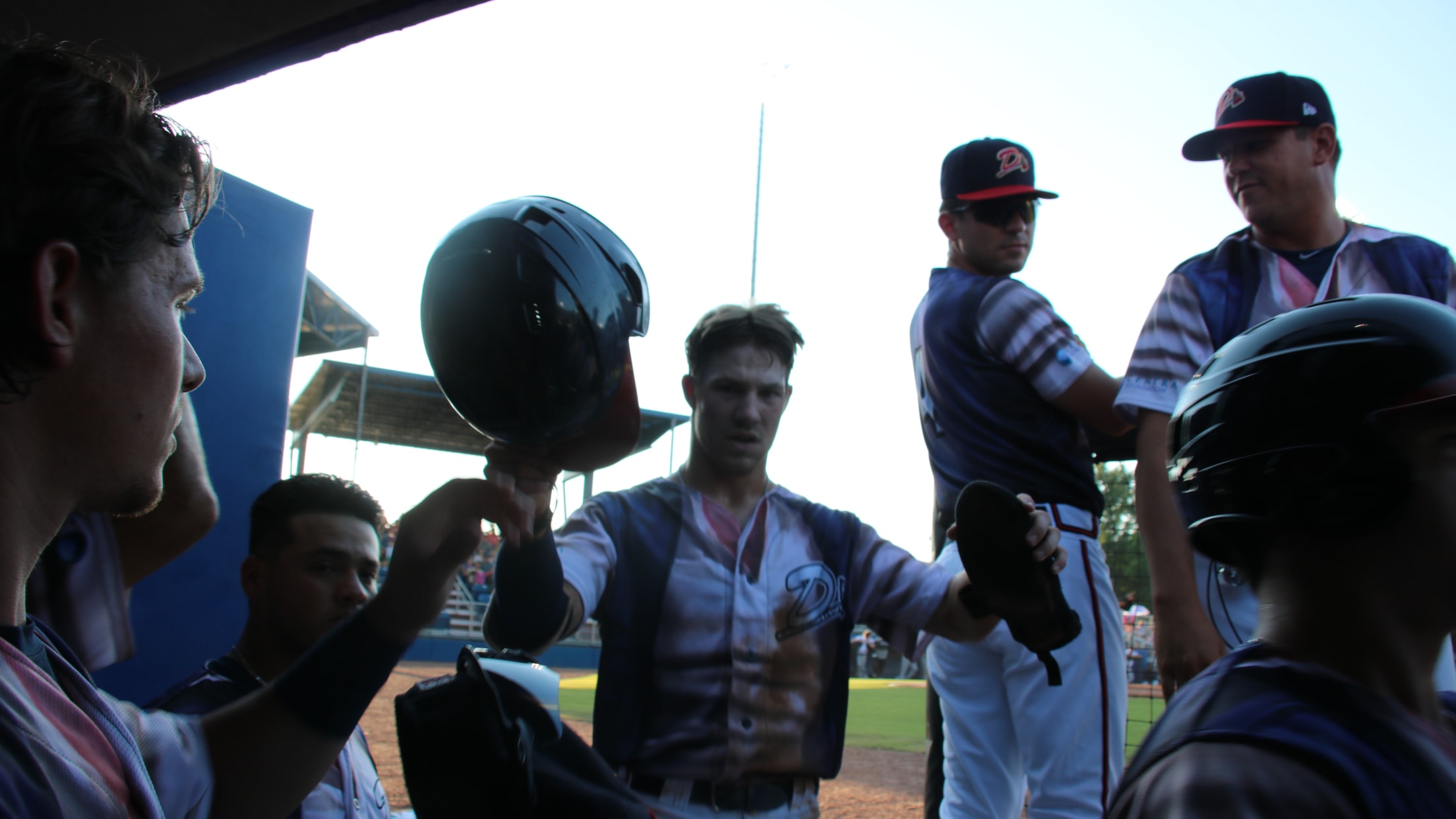The D-Braves took a no-hitter into the seventh inning and ultimately surrendered the fewest hits allowed all season, ending Pulaski's eight-game win streak in convincing fashion. Connor Blair's three-run home run in the third inning was the team's tenth at home this season, already one more than the D-Braves produced at Legion Field all of last season.