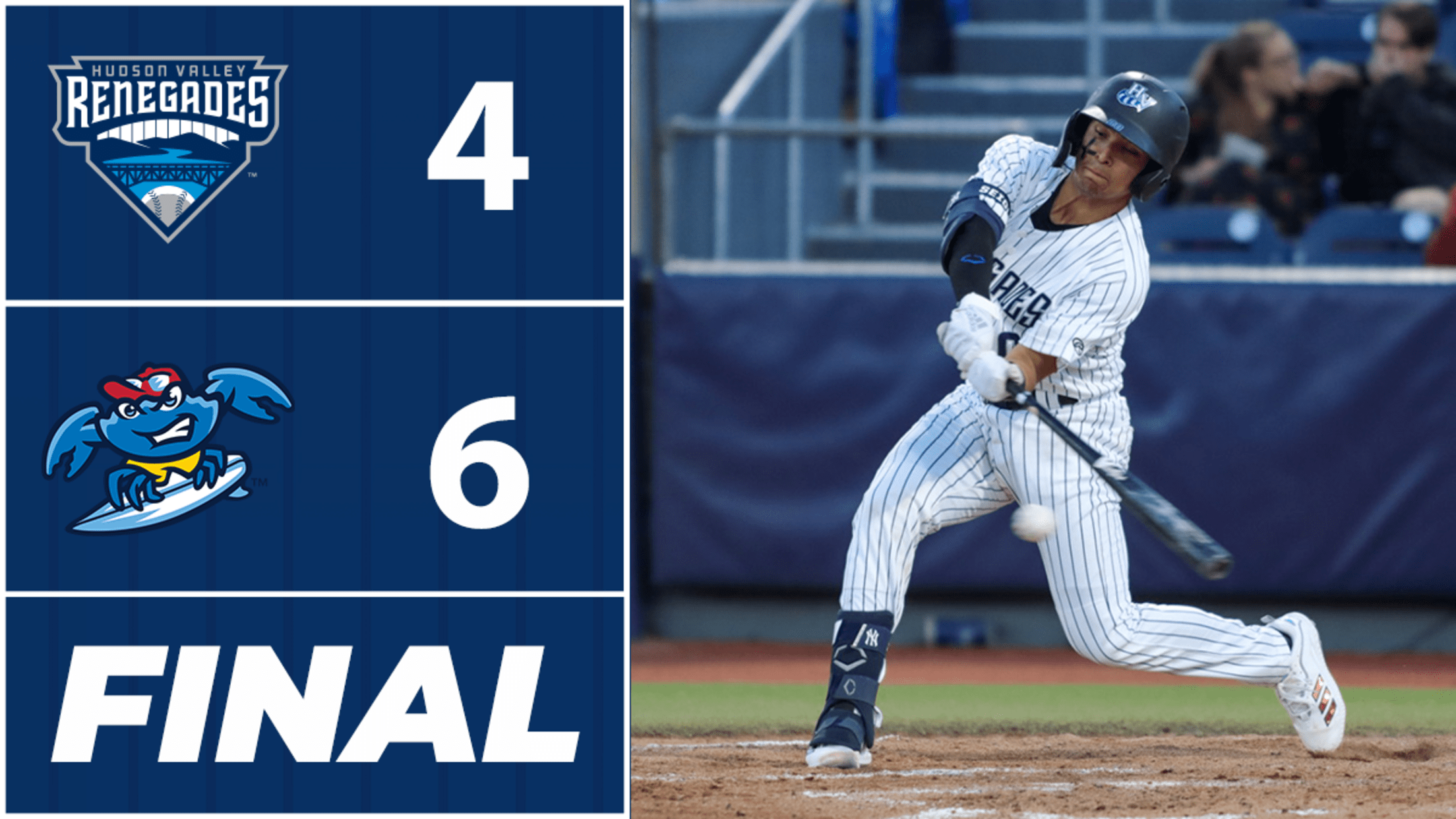 The Hudson Valley Renegades fell to the Jersey Shore BlueClaws on Wednesday night at Dutchess Stadium, 6-4.