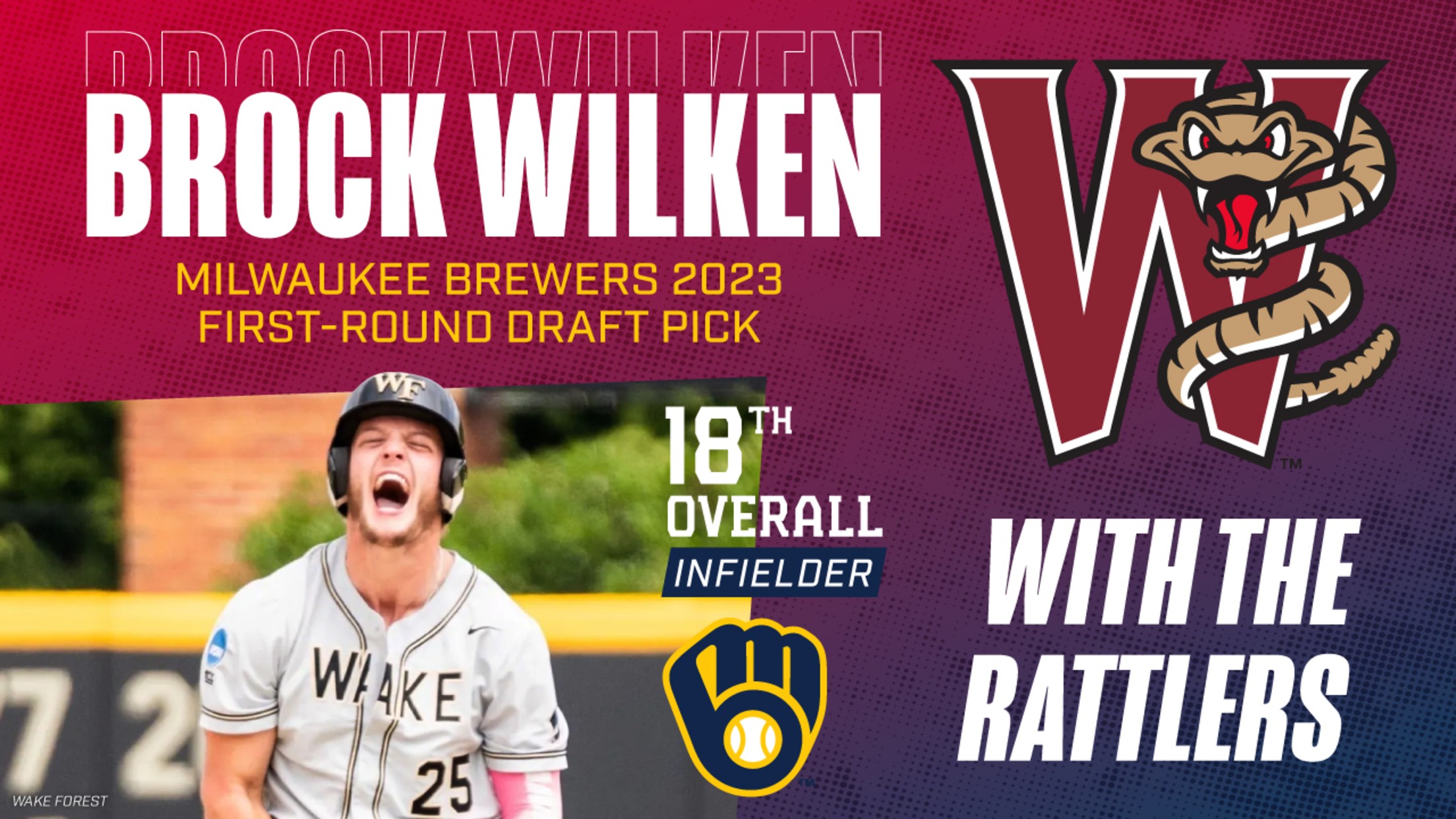 GRAND CHUTE, WI – Brock Wilken, the first-round pick of the Milwaukee Brewers in the 2023 MLB Draft, has been assigned to the Wisconsin Timber Rattlers. The slugger was selected eighteenth overall in the July draft after a record-breaking career at Wake Forest University.