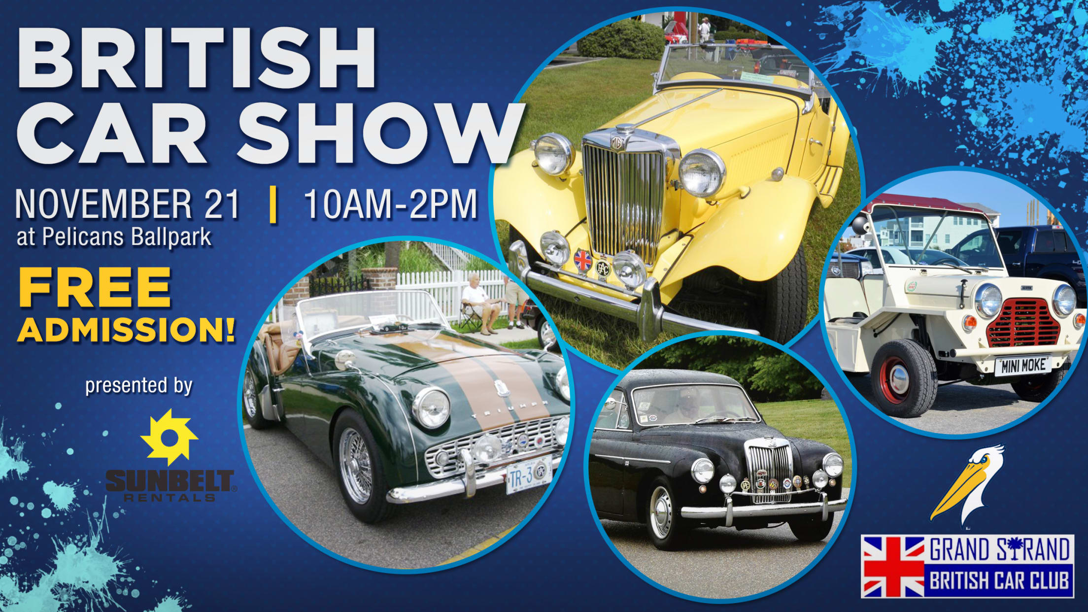 The Myrtle Beach Pelicans are partnering with the Grand Strand British Car Club on a Car Show at Pelicans Ballpark on November 21. The show, dubbed BRITNIC 2020, is presented by Sunbelt Rentals and will run from 10am to 2pm and will feature up to 55 British cars on display