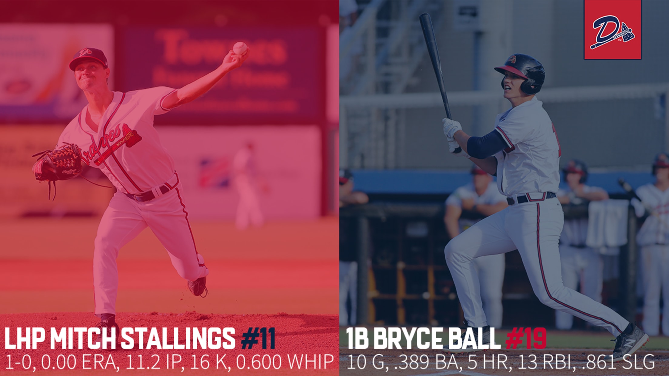 DANVILLE, Va. - The Atlanta Braves released their June Players of the Month for each of their minor league affiliates. For the Danville Braves, Bryce Ball was named Position Player of the Month and Mitch Stallings was named Pitcher of the Month.