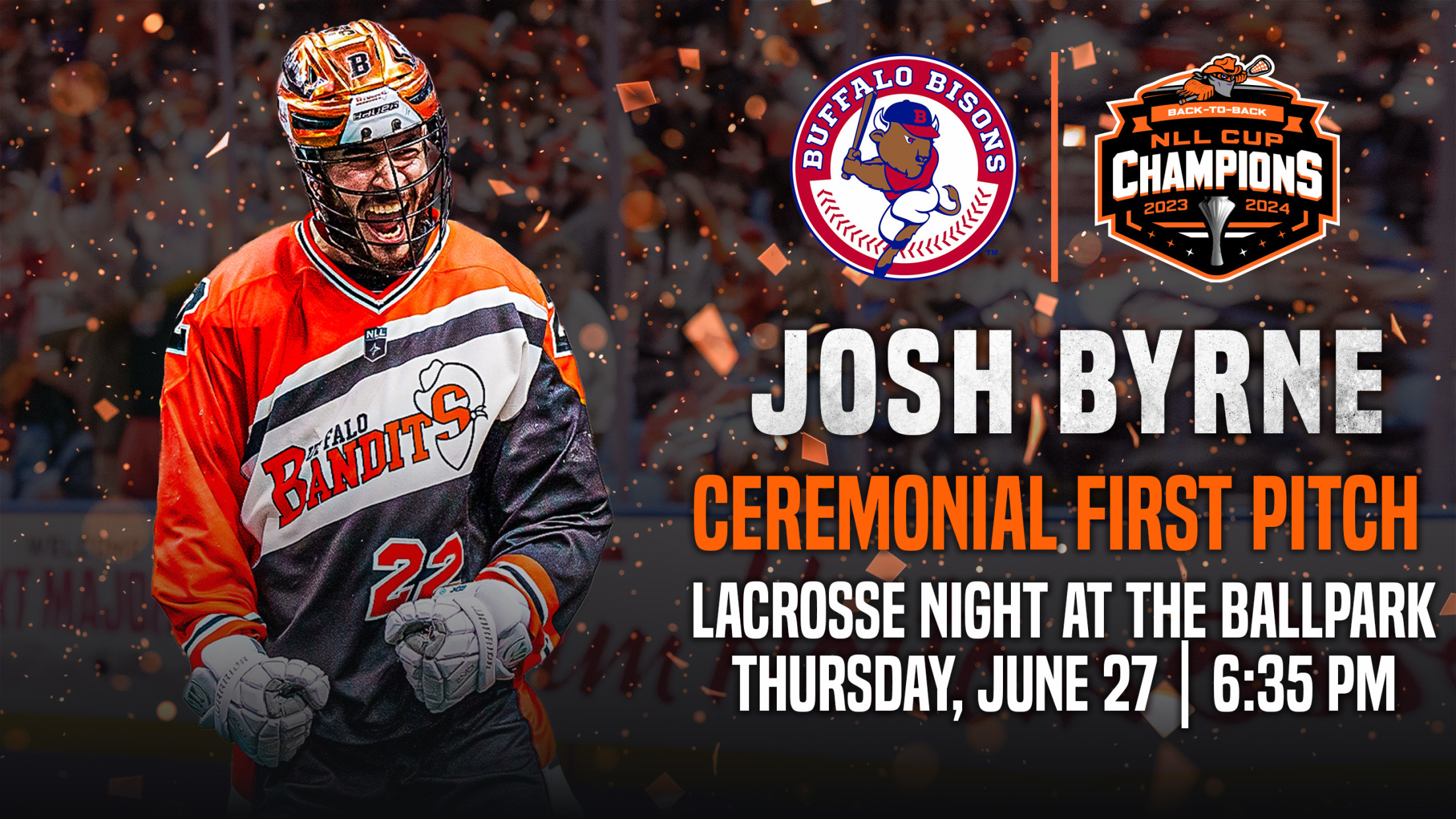 GET MY LACROSSE NIGHT TICKETS The Buffalo Bisons have announced that Buffalo Bandits Forward and MVP of both the National Lacrosse League Season and Playoffs, JOSH BYRNE, will throw the Ceremonial First Pitch prior to the Herd’s ‘Lacrosse Night at the Ballpark,’ presented by LEGENDS, Thursday, June 27 against the