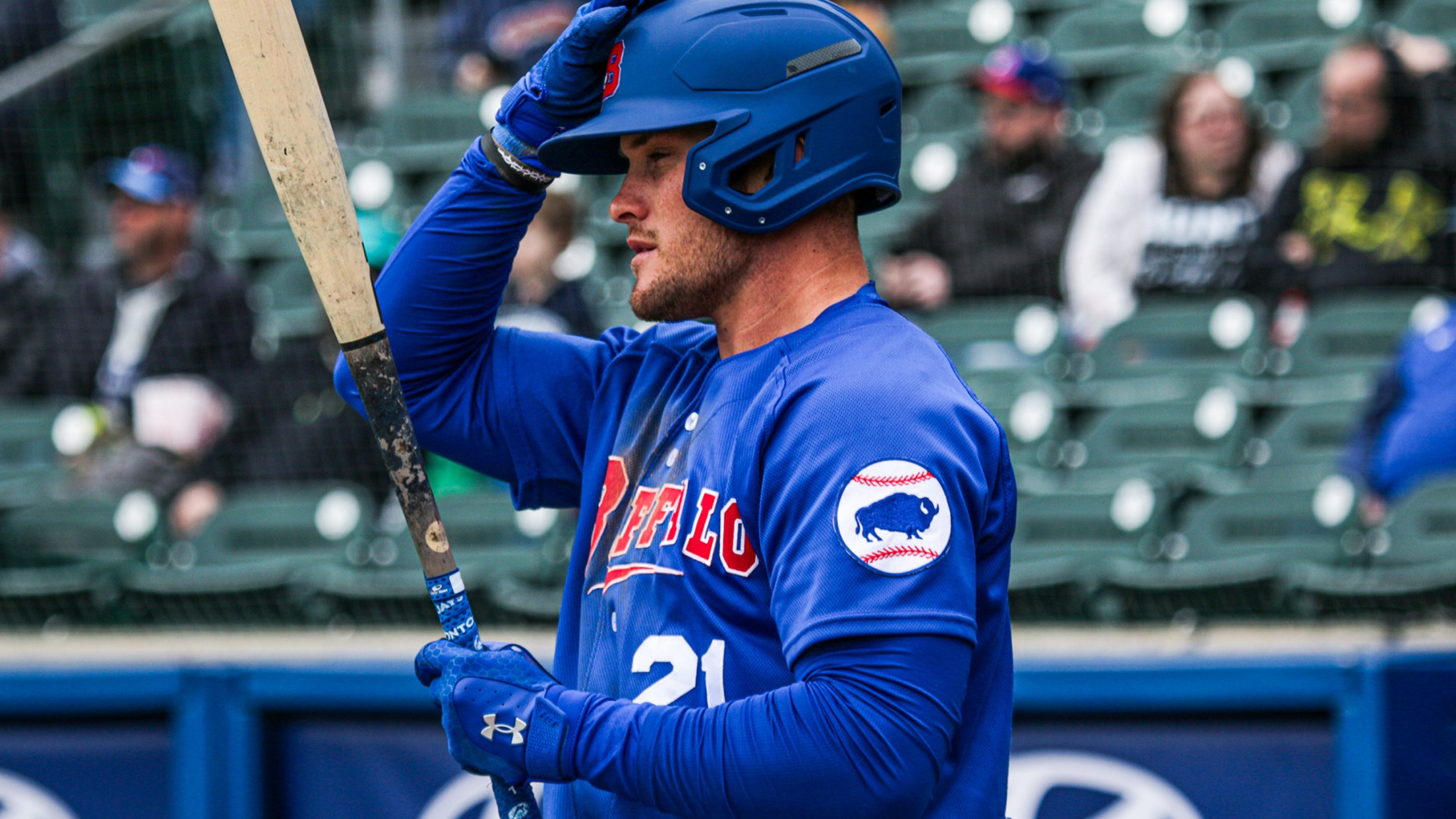 Will Robertson wasted little time showing Bisons fans what he’s capable of at the plate. After drawing a walk in his first plate appearance in his first Triple-A game, he stepped to the plate in the fifth inning on a chilly April day – and drilled a ball 427-feet over the right-center field wall for his first Triple-A home run.