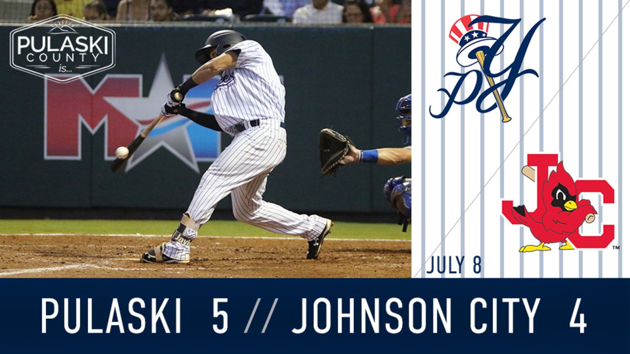 After receiving the blown save in the eighth, Espinal worked around a runner in scoring position with one out in the bottom of the ninth to successfully retire the side and earn the win for the Yankees. Pulaski's win improved their record to 8-11 on the 2018 season and improved their record to a perfect 3-0 on Sundays. The Yankees and Cardinals will conclude their three-game set tomorrow at 7 p.m.