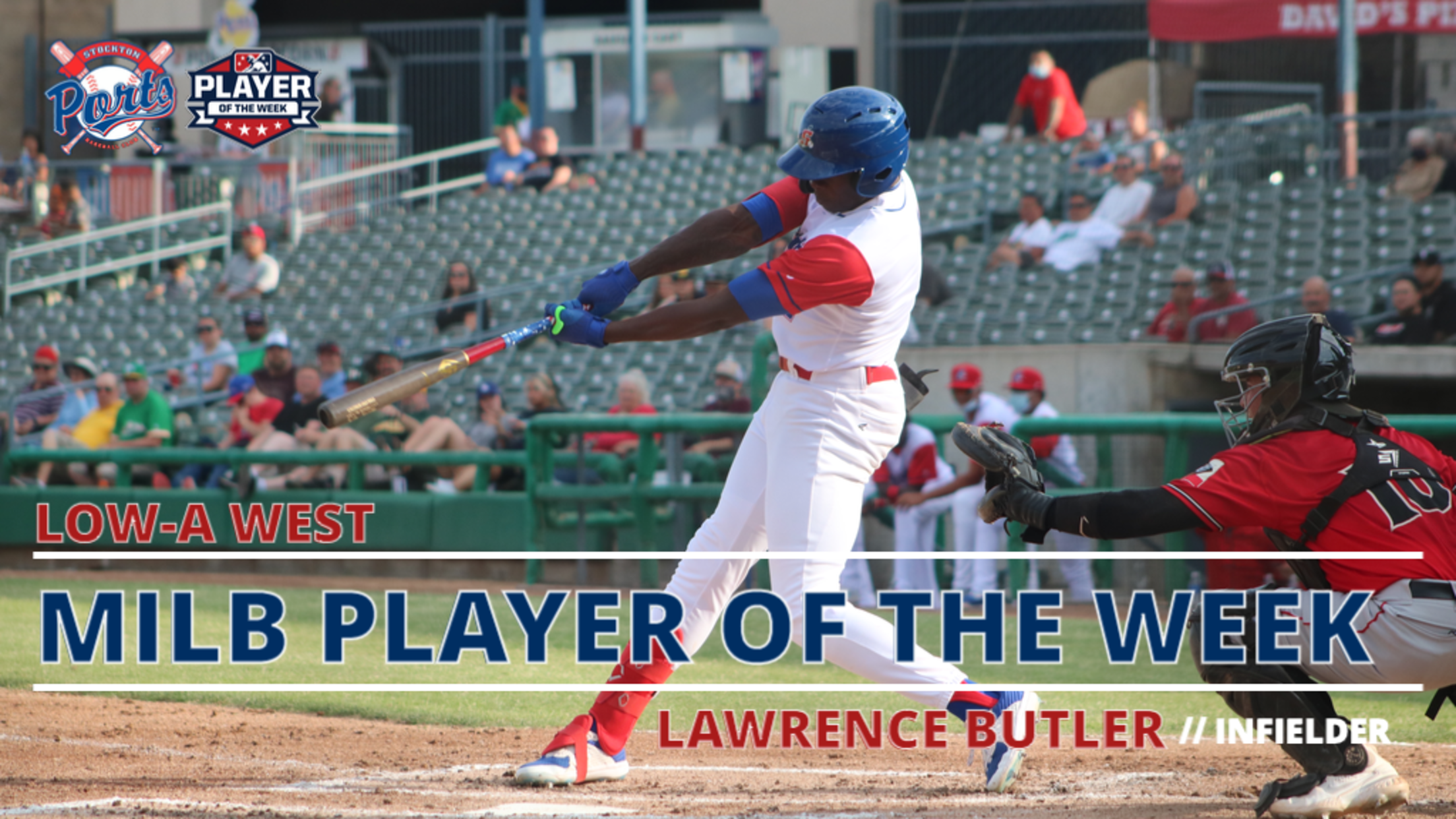 Stockton Ports first baseman Lawrence Butler has been named the Low-A West Player of the Week for the week of July 19 - 25, Minor League Baseball announced Monday morning. This is the first time Butler has been named Player of the Week. Butler helped guide the Ports to a
