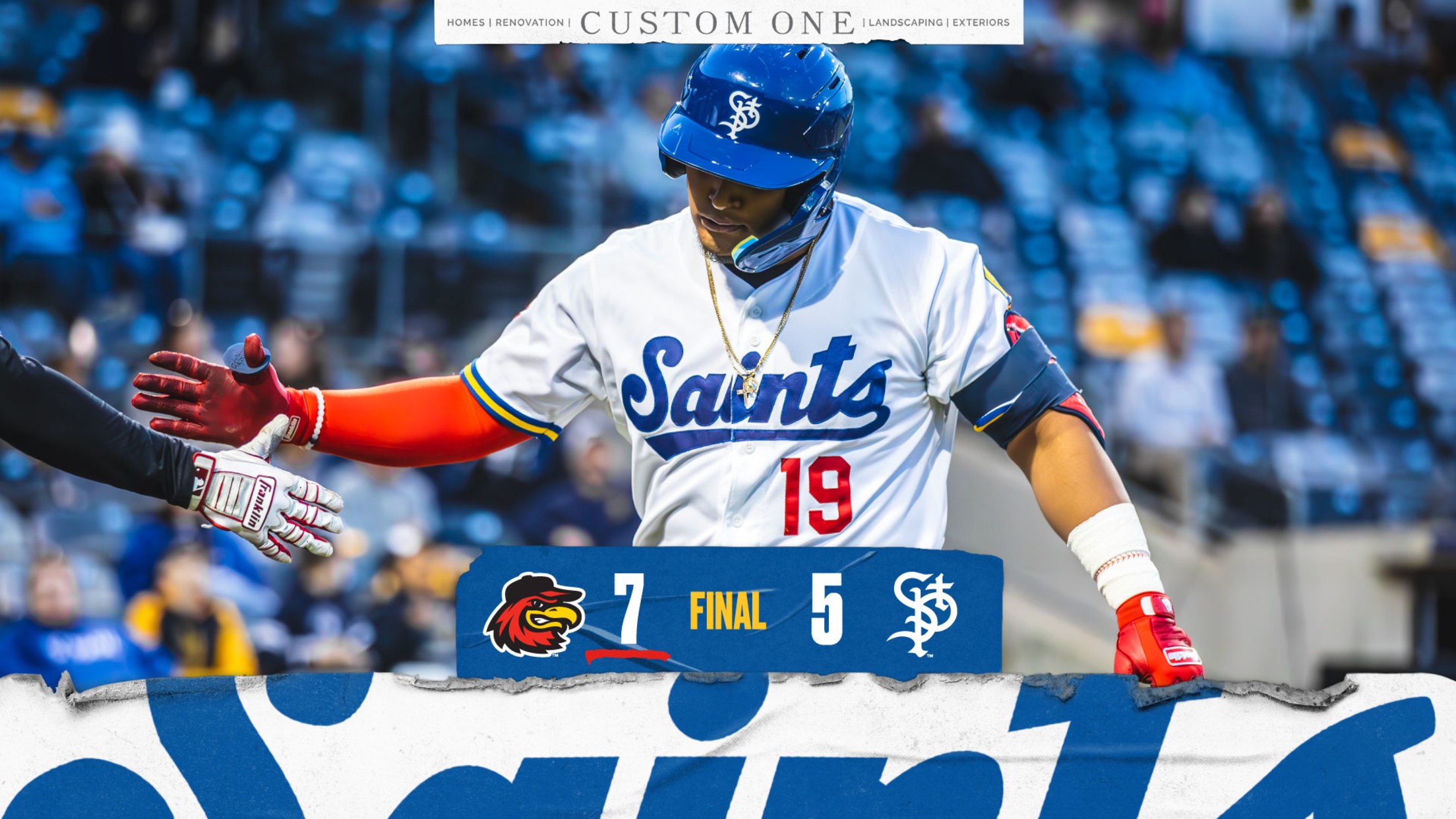 ST. PAUL, MN (April 24, 2024) - The St. Paul Saints and Rochester Red Wings met seven times at CHS Field before Wednesday night. The Saints won all seven times. On Wednesday night the Saints had the tying runs aboard with nobody out in the ninth with the heart of the order up, but couldn’t cash in as they fell 7-5 to the Red Wings in front of 3,497 at CHS Field.