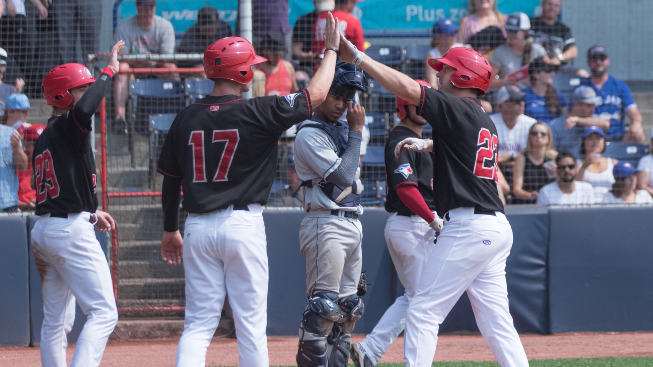 The ten-run frame, which put the game out of reach within minutes saw eight hits, a pair of walks and a hit batter allowing the Canadians to score a season-high for runs in a single inning. David Jacob slammed his 4th home run of the season scoring both