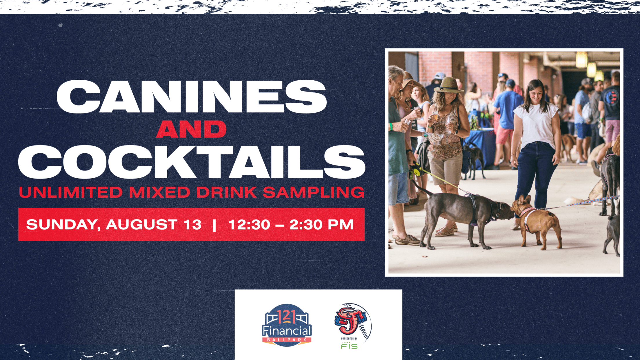PURCHASE TICKETS HERE JACKSONVILLE, Fla. – Dog-owners are in for a special treat for the Jacksonville Jumbo Shrimp’s next Forever Vets Animal Hospital Canines and Crustaceans Dog Day at 121 Financial Ballpark. From 12:30-2:30 on Sunday, August 13, the club is hosting Canines & Cocktails, a pregame mixed drink sampling