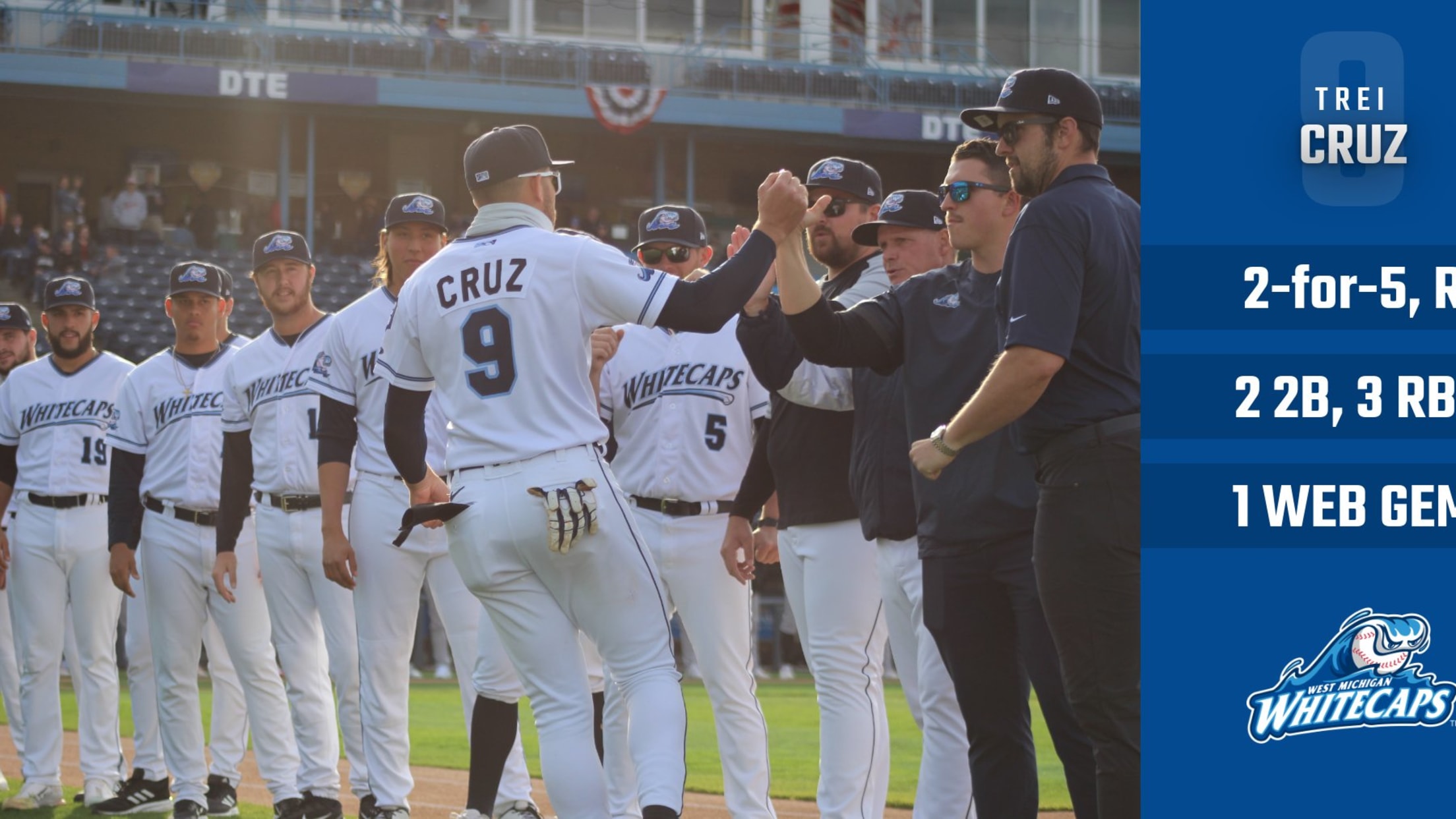 The game was a back-and-forth contest, as West Michigan built a 6-2 lead through four innings on run-scoring singles by Austin Murr, Josh Crouch, and Eliezer Alfonzo. After a fifth inning Ben Malgeri RBI-double increased West Michigan's lead to 7-4, Kernels shortstop Wander Javier blasted a run-scoring double, and Christian Encarnacion-Strand delivered a go-ahead, three-run homer to help Cedar Rapids take an 8-7 lead. The score remained the same until the eighth when Cruz, who had brought home a run with a double in the fourth and made his incredible defensive play in the fifth, launched a two-run double to help West Michigan retake the lead at 9-8. Crouch helped deliver an insurance run in the ninth to extend the lead to 10-8 and help West Michigan win its first game of the 2022 Midwest League second half.