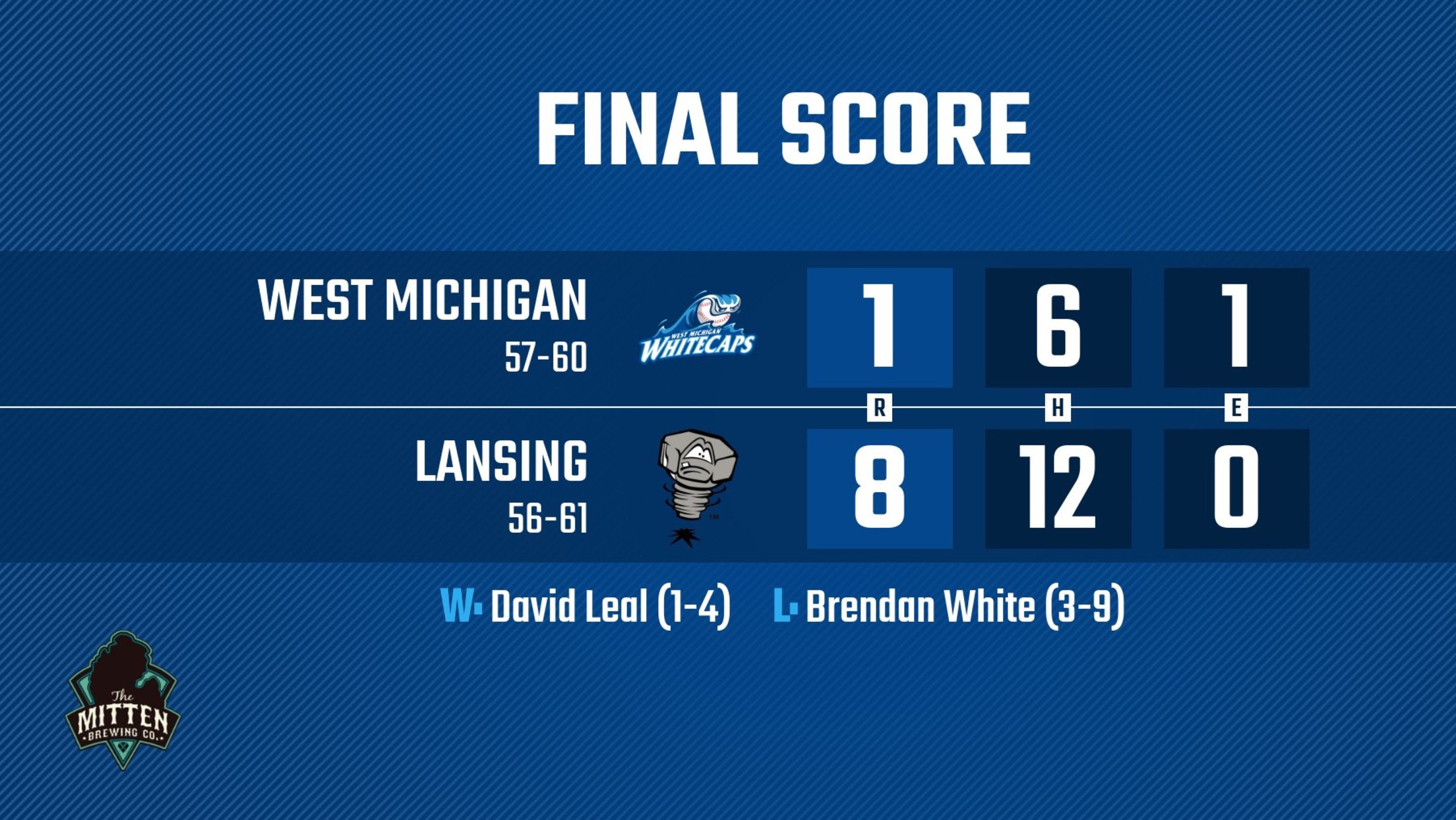 LANSING, MI – The West Michigan Whitecaps couldn’t find their offense when it mattered most as part of an 8-1 loss to the Lansing Lugnuts in front of 6,855 fans at Jackson Field on Thursday night.