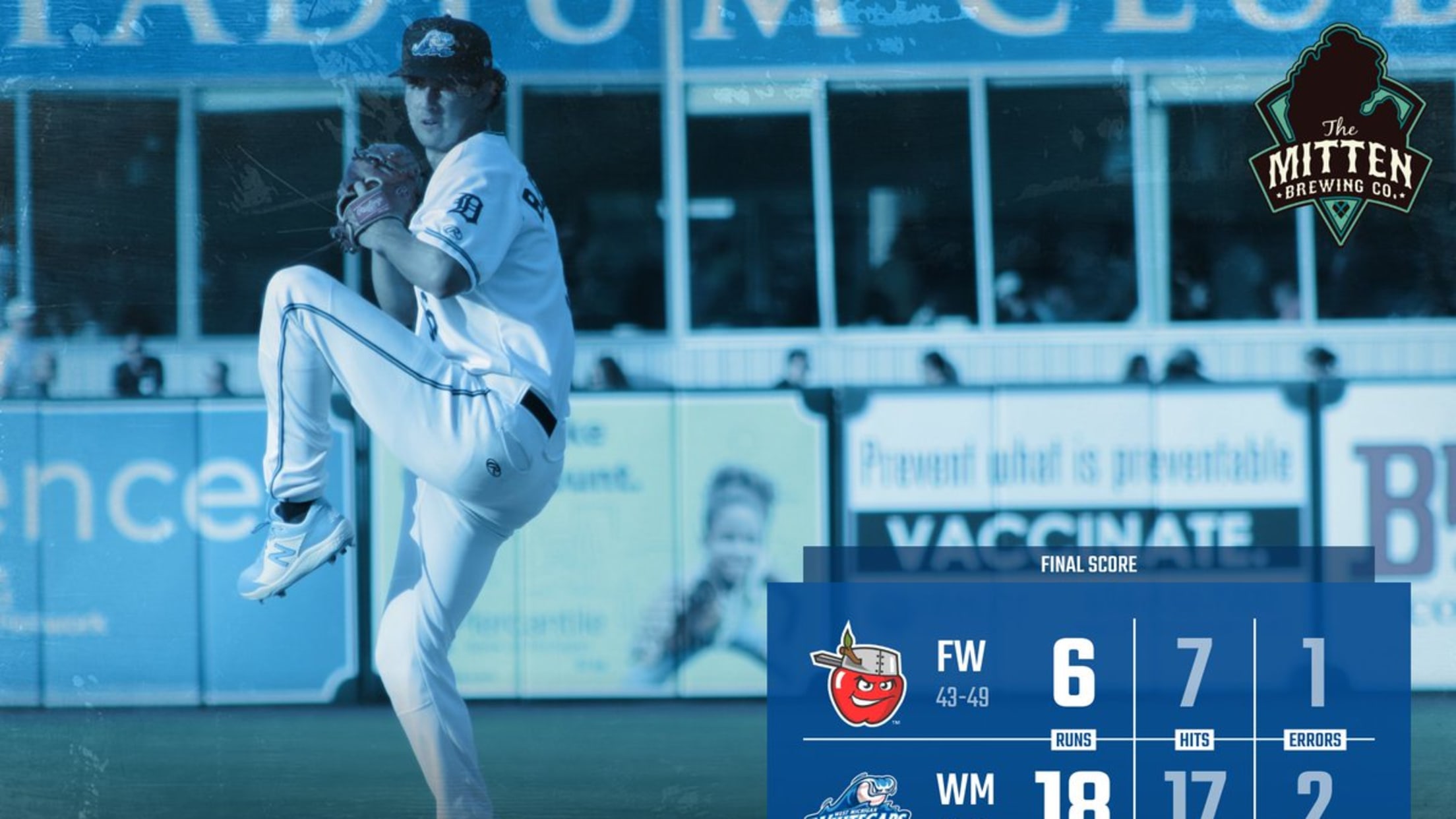 COMSTOCK PARK, MI – The West Michigan Whitecaps enjoyed their biggest offensive performance of the season, rolling over the Fort Wayne TinCaps 18-6 in front of 4,424 fans Wednesday night at LMCU Ballpark.