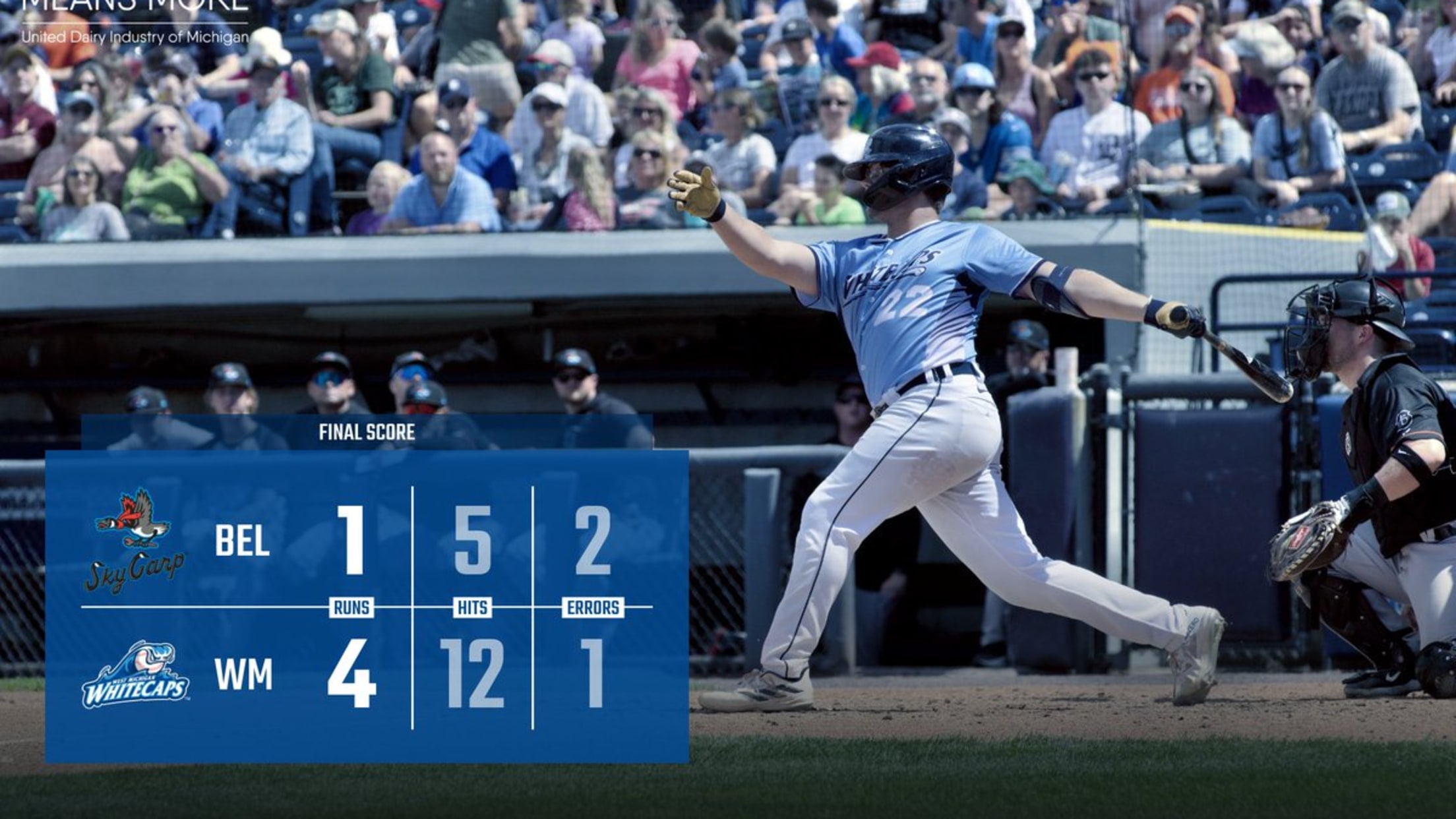 Beloit grabbed the lead in the top of the fourth inning as Sky Carp first baseman Brock Vradenberg scored Mark Coley II on an RBI single before West Michigan leveled the game at 1-1 in the bottom half on an RBI single by Stephenson. Marcano retired six-straight Beloit hitters through the fifth and sixth frames before Jim Jarvis inched the ‘Caps in front in the seventh, adding an RBI single to make it 2-1. West Michigan then added a pair of crucial insurance runs in the eighth inning – highlighted by an RBI double from Stephenson – as Kohlhepp and Jimenez combined for four strikeouts through two scoreless frames to put the finishing touches on the 4-1 win.