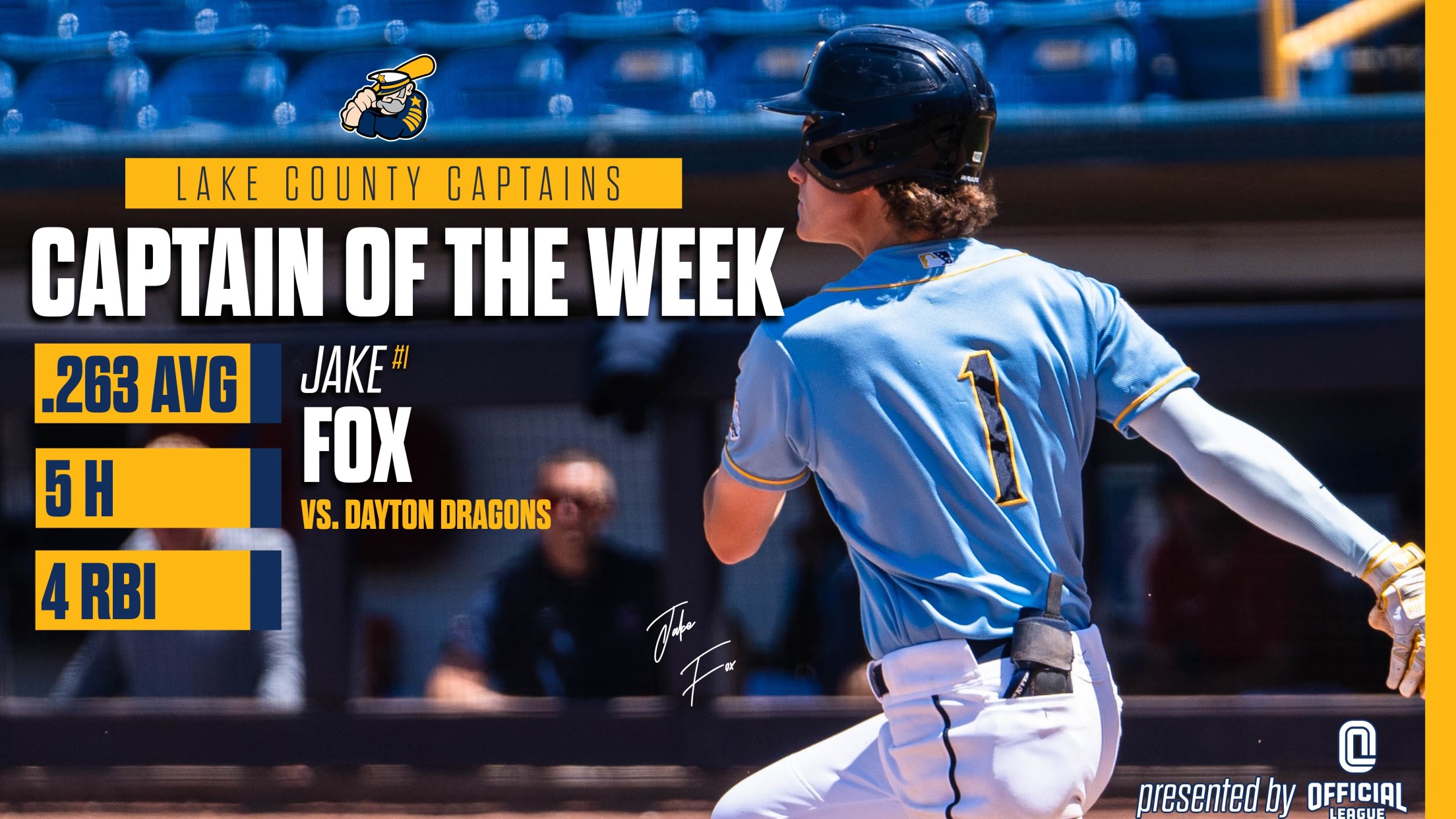 EASTLAKE, OH – After each series this season, the Lake County Captains will spotlight a Captain of the Week, presented by Official League, showcasing a player and their strong performance over the previous week. For the week of August 6 through August 11, Lake County is recognizing OF/2B Jake Fox