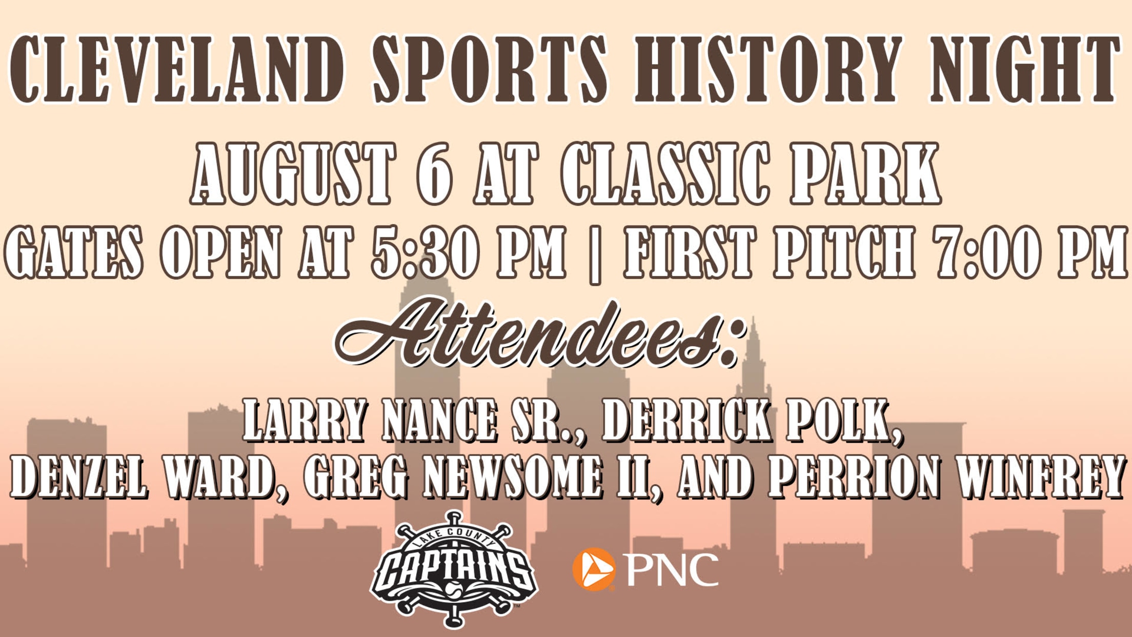 (Eastlake, OH) - The Lake County Captains, the High-A affiliate of the Cleveland Guardians, are excited to add current Cleveland Browns players Denzel Ward, Greg Newsome II and Perrion Winfrey to the list of athletes making appearances for the team’s annual Cleveland Sports History Night on Saturday, August 6.