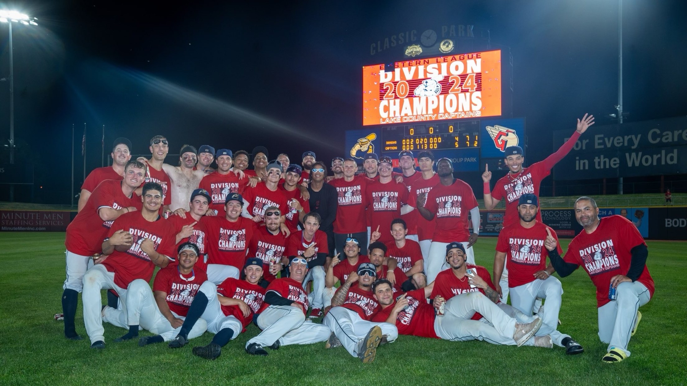 Captains 3B Alex Mooney, MLB Pipeline’s No. 23 Cleveland prospect, charged, gloved, and threw high to first. But 1B Ralphy Velazquez, MLB Pipeline’s No. 4 Cleveland and No. 72 overall prospect, corralled it and tagged out Balcazar to clinch the 2024 Midwest League East Division Championship for Lake County.