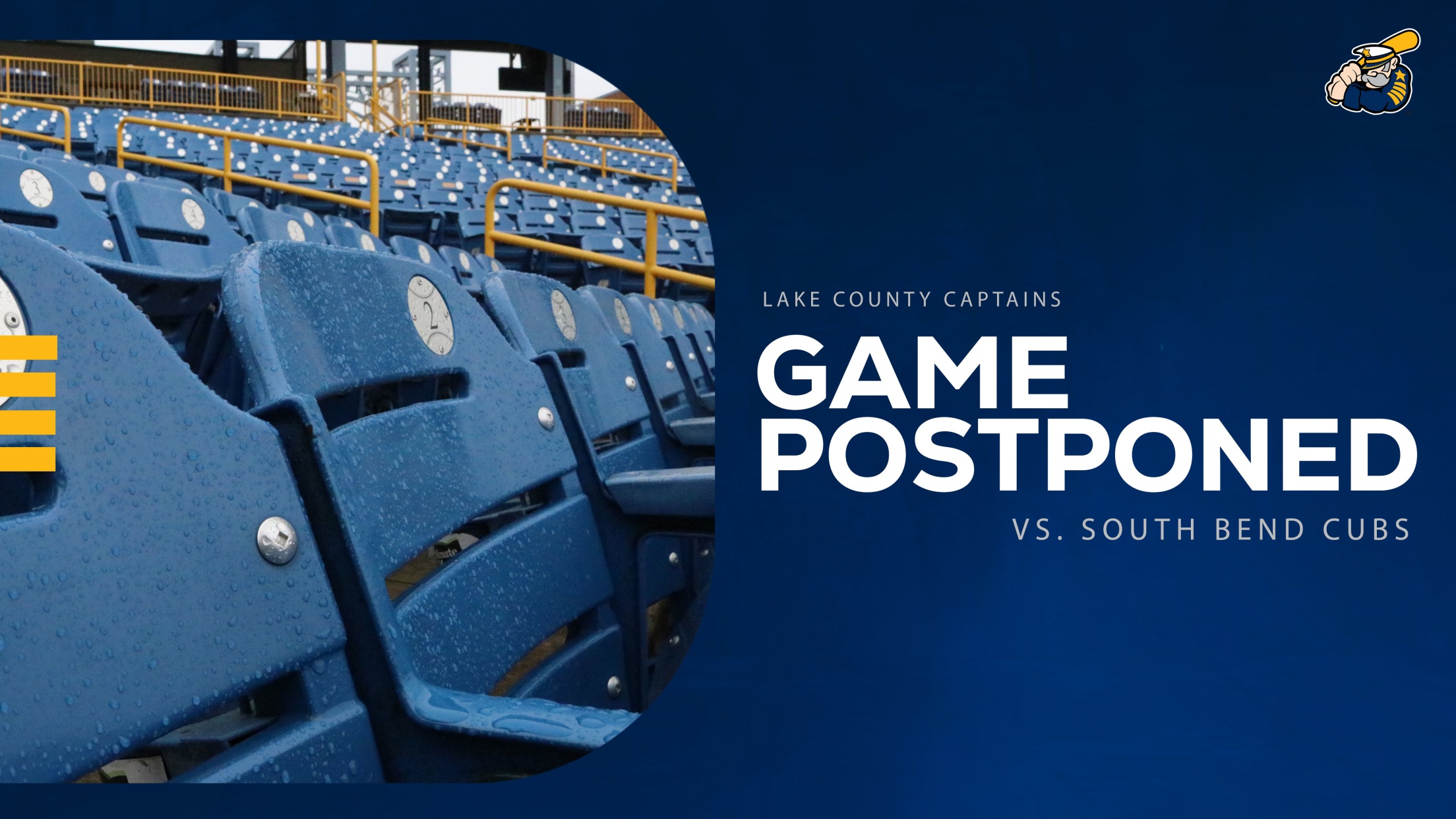 (Eastlake, OH - August 11, 2023) Tonight’s game between the Lake County Captains and the South Bend Cubs has been postponed due to inclement weather.