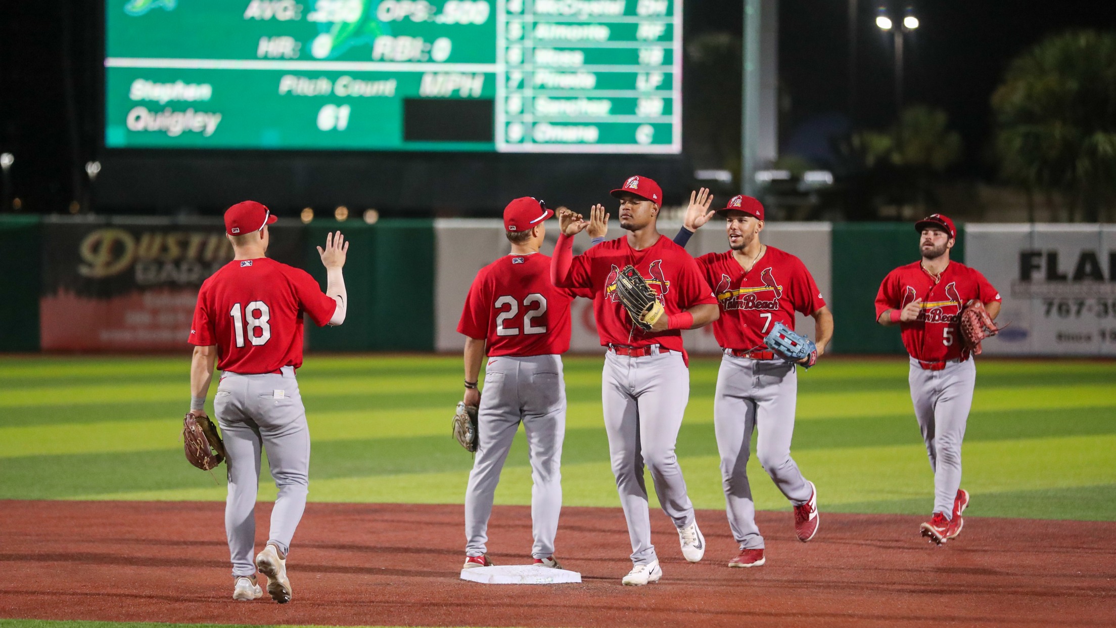 JUPITER, FL – The Palm Beach Cardinals set the tone early and never looked back as they defeated the Daytona Tortugas by a final score of 8-3 in game one of the FSL East Divisional Round on Tuesday night at Jackie Robinson Ballpark.