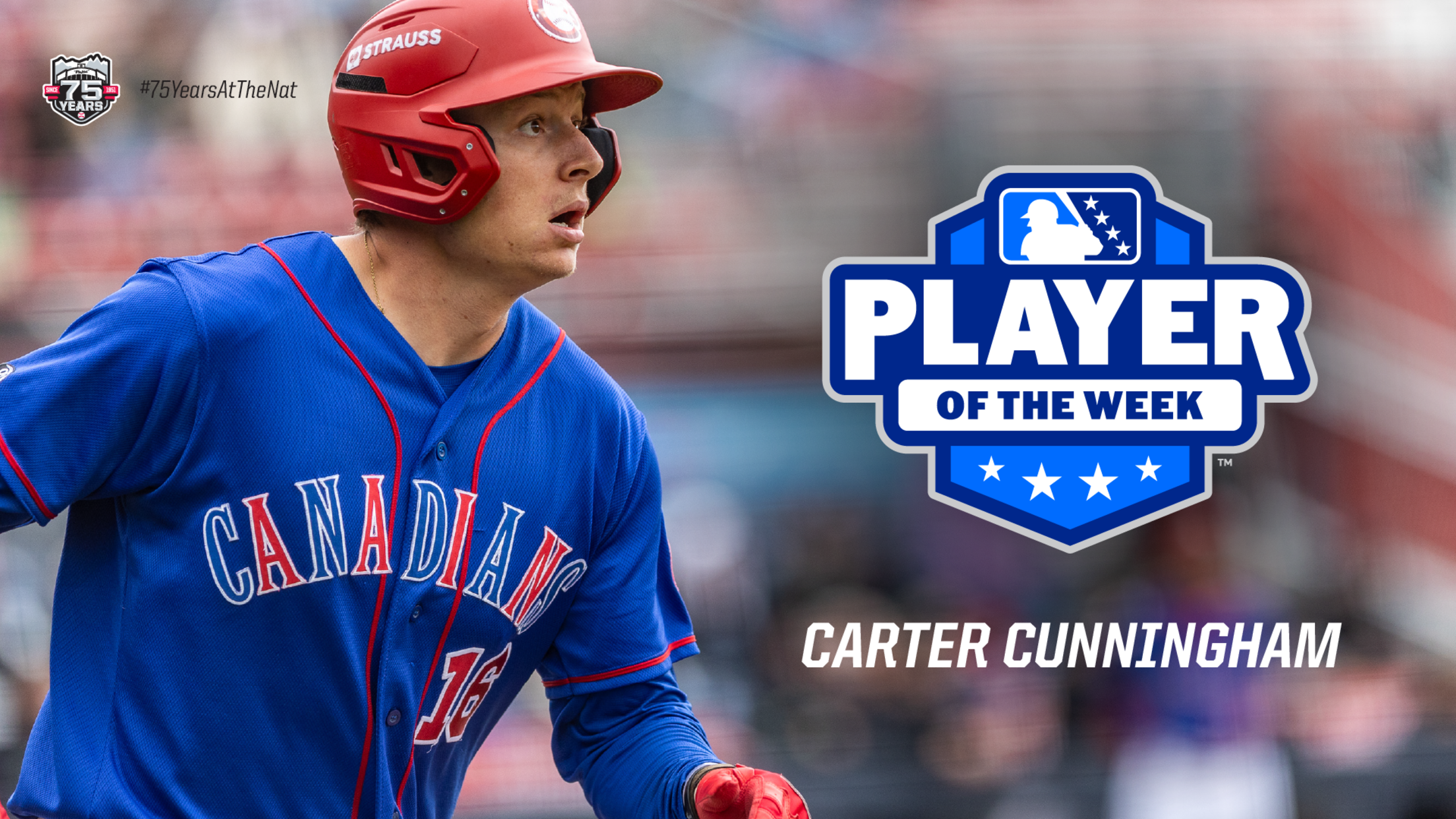 VANCOUVER, BC – Minor League Baseball has named Canadians utilityman Carter Cunningham as the Northwest League Player of the Week for April 6-12 after he racked up 10 hits – including three homers – with four runs scored, 10 RBI and six walks in six games played. It’s the first