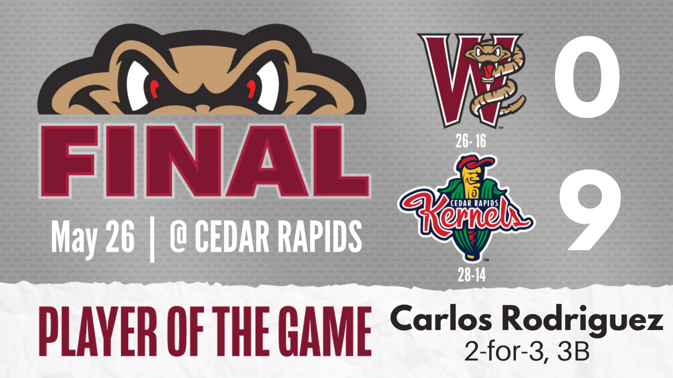 CEDR RAPIDS, IA – The Cedar Rapids Kernels were opportunistic on offense and their pitchers were almost unhittable to combine for a 9-0 win over the Wisconsin Timber Rattlers on Thursday night at Perfect Game Field.