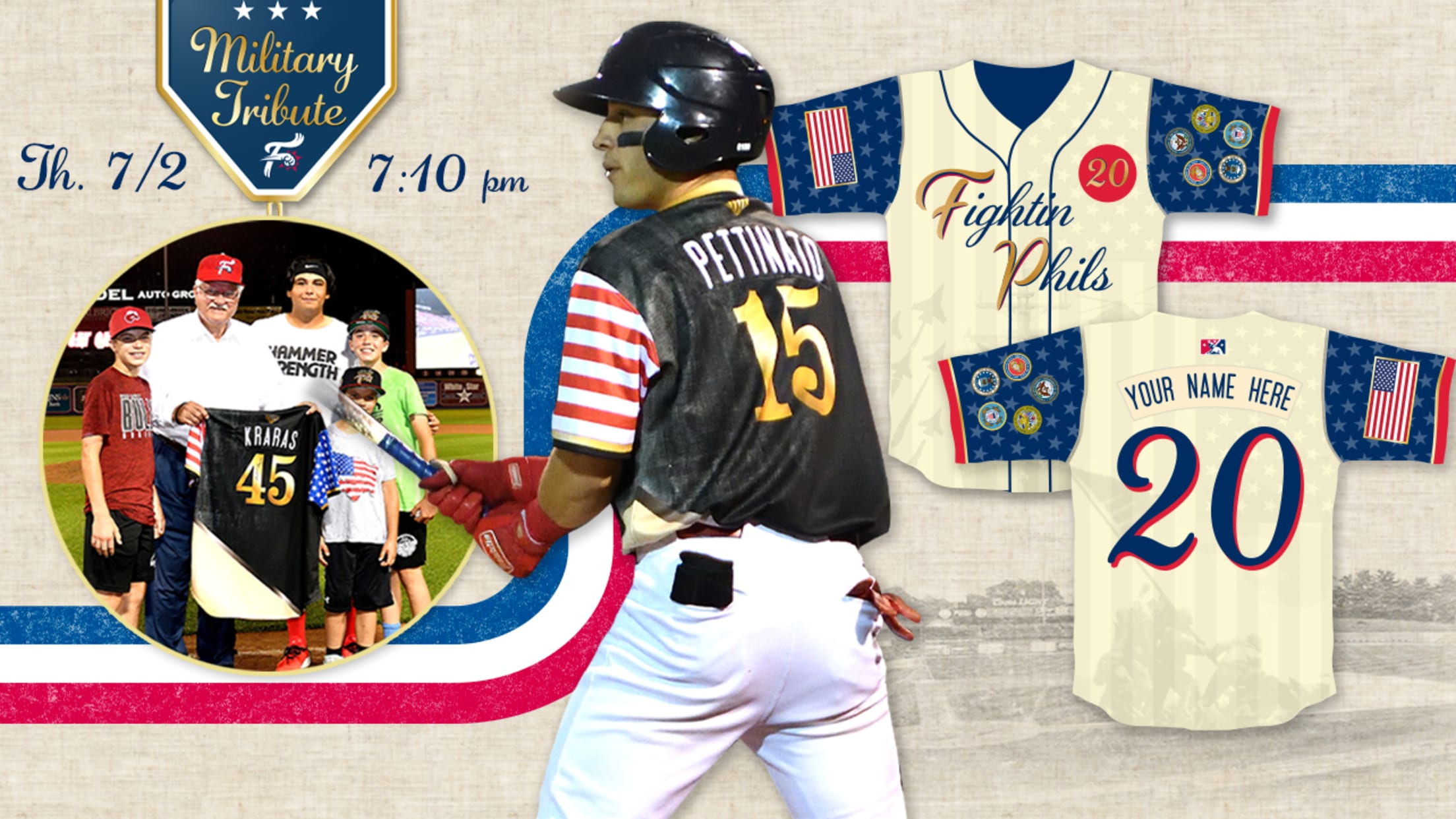 (Reading, PA) - The Reading Fightin Phils will celebrate and honor veterans and active duty military at FirstEnergy Stadium on Thursday, July 2nd, when R-Phils players will wear custom jerseys featuring the names of current and former military members.