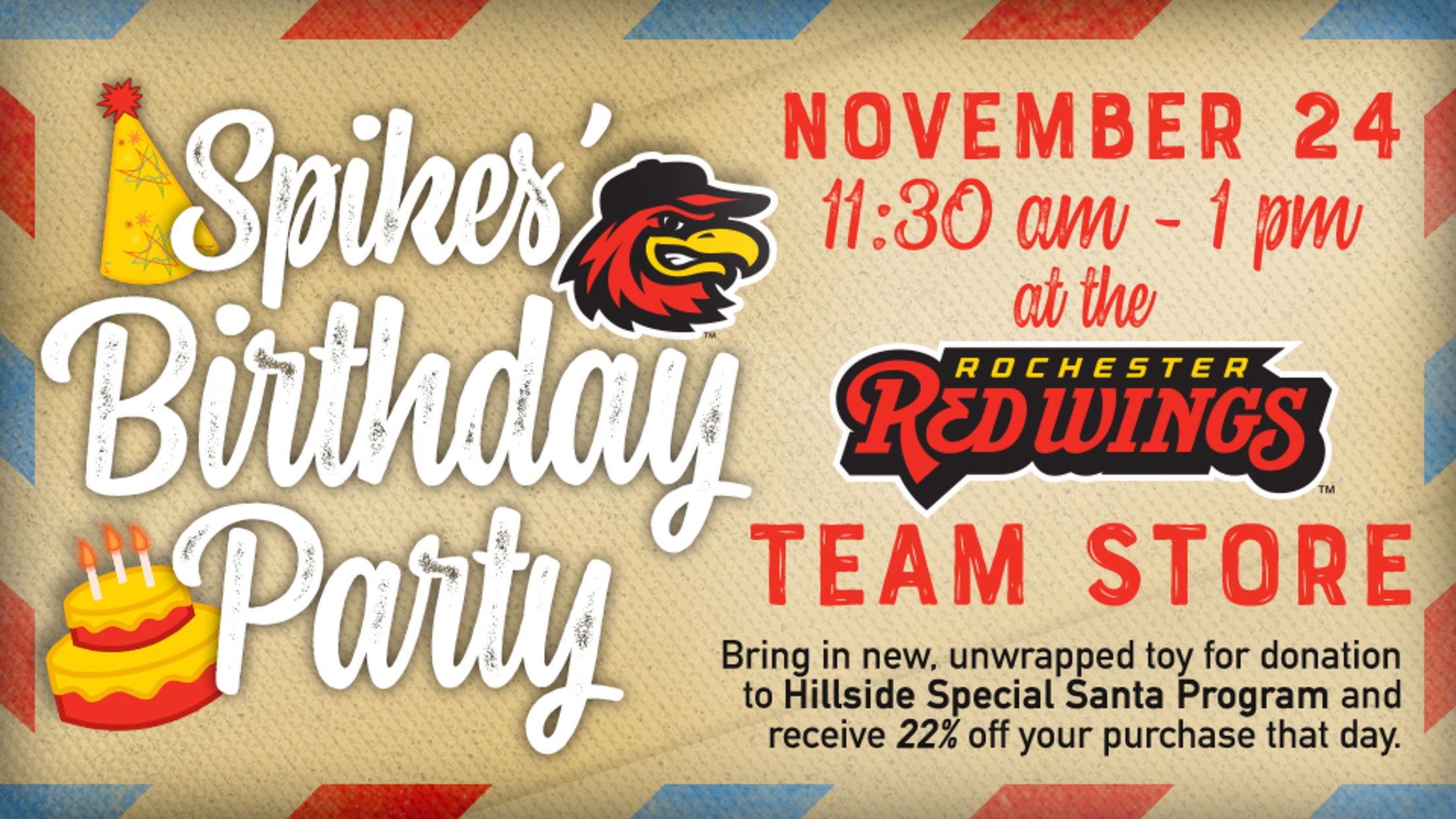 Come celebrate Spikes' 22nd birthday with us from 11:30 am - 1 pm on Saturday, November 24 at the Red Wings Team Store.