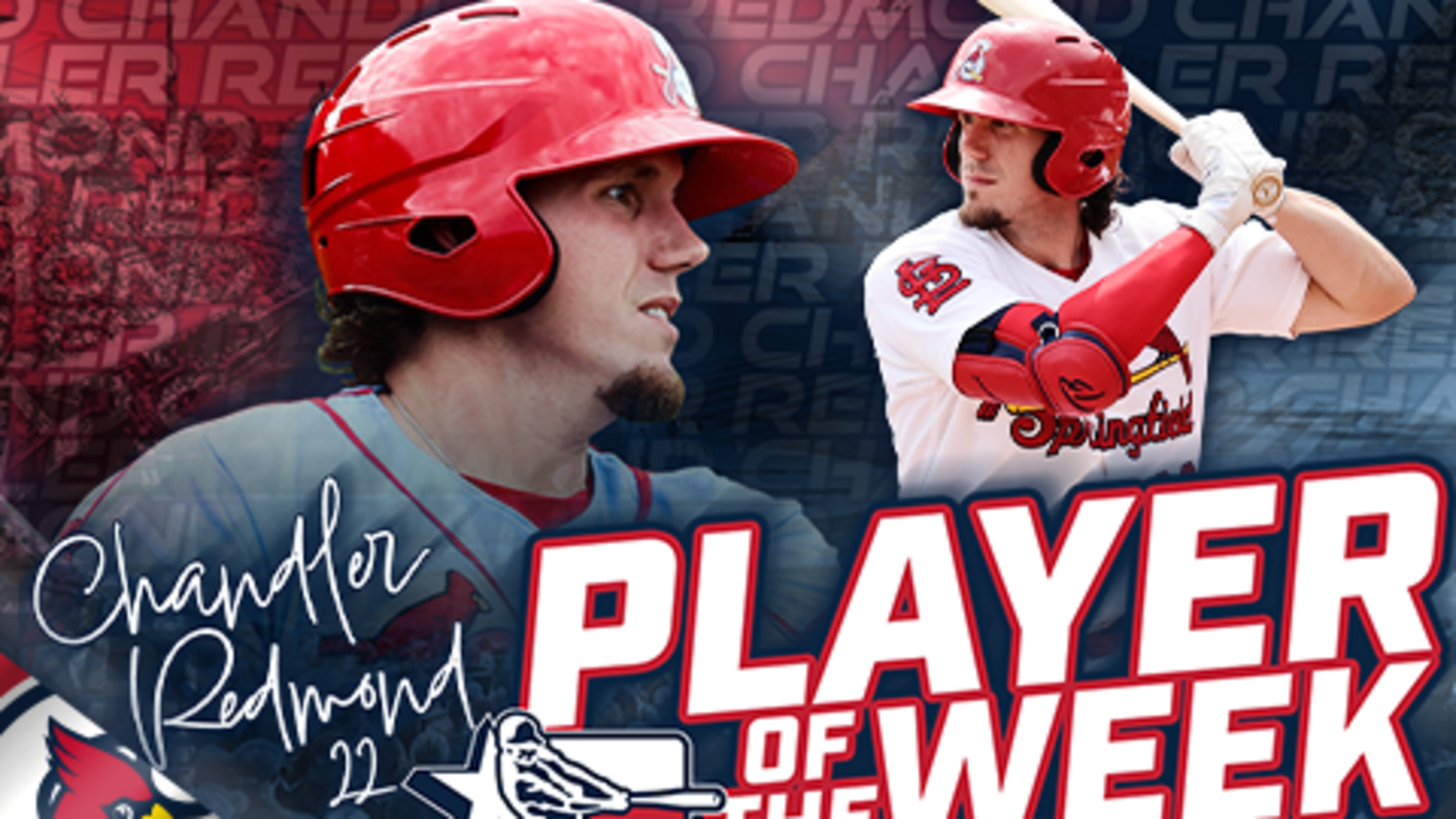 SPRINGFIELD, Mo. -- Minor League Baseball announced on Monday that Springfield Cardinals 1B Chandler Redmond has been named the Texas League Player of the Week for August 21-27. This marks the fourth time this season that a Springfield Cardinal has won a weekly league award, with RHP Brandon Komar winning