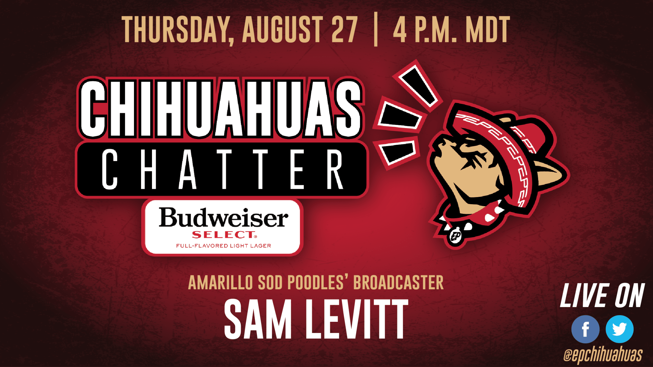 Sam Levitt, the play by play broadcaster for the Amarillo Sod Poodles, the Double-A affiliate of the San Diego Padres, will appear on Chihuahuas Chatter presented by Budweiser Select on Thursday, August 27, at 4 p.m. MDT, hosted by the voice of the Chihuahuas Tim Hagerty.