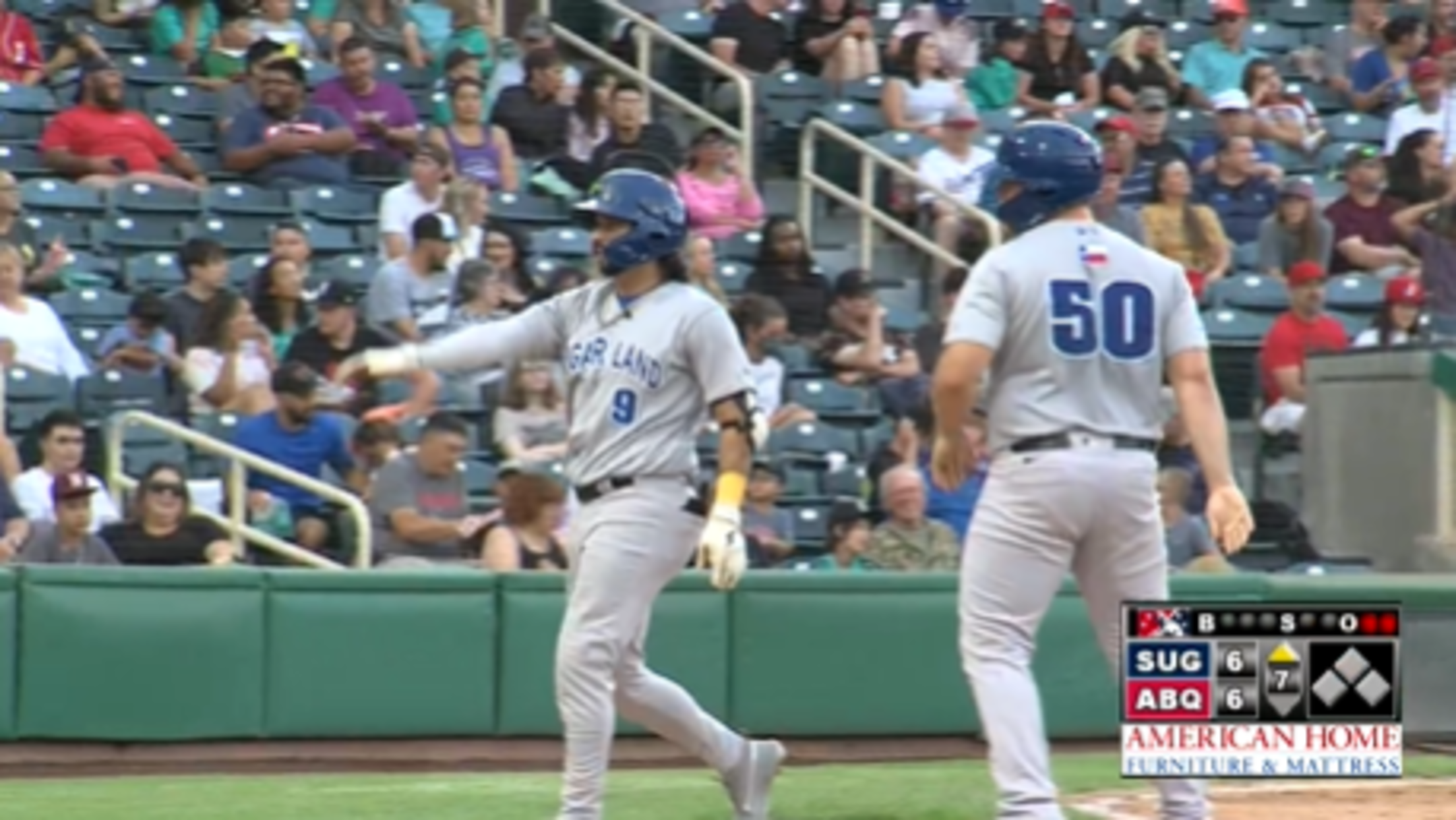(ALBUQUERQUE, New Mexico) – CJ Hinojosa homered twice as the Sugar Land Skeeters prevailed for a 9-7 extra-inning win Sunday night against the Albuquerque Isotopes.