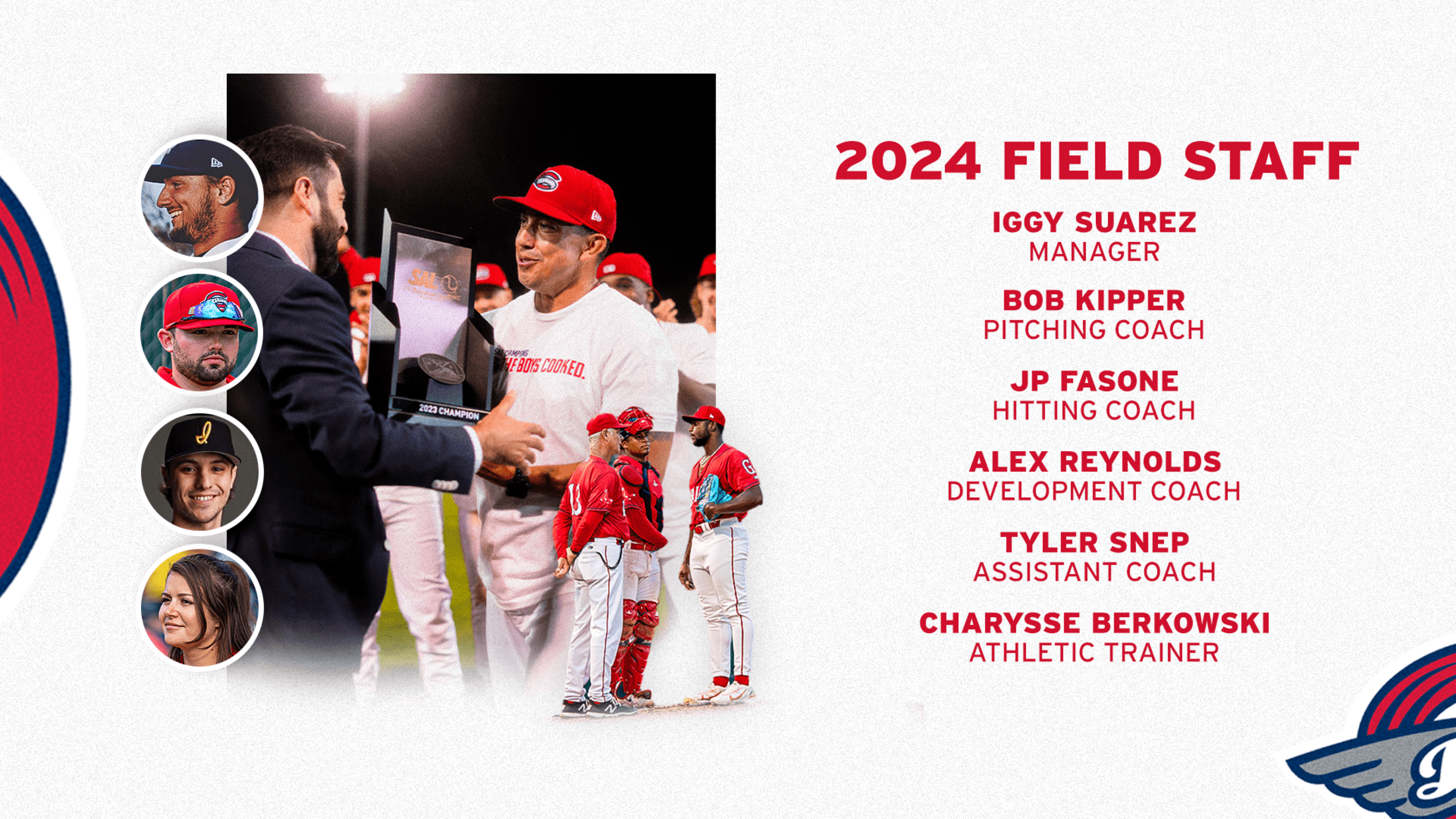 Greenville, S.C. — The Greenville Drive, High-A Affiliate of the Boston Red Sox, announced their 2024 Field Staff today, anchored by a returning core that guided the Drive to the 2023 South Atlantic League Championship. Manager Iggy Suarez and Pitching Coach Bob Kipper return to the Drive for their sixth consecutive season at the helm, while Development Coach Alex Reynolds and Athletic Trainer Charysse Berkowski return for a second go-around in Greenville.