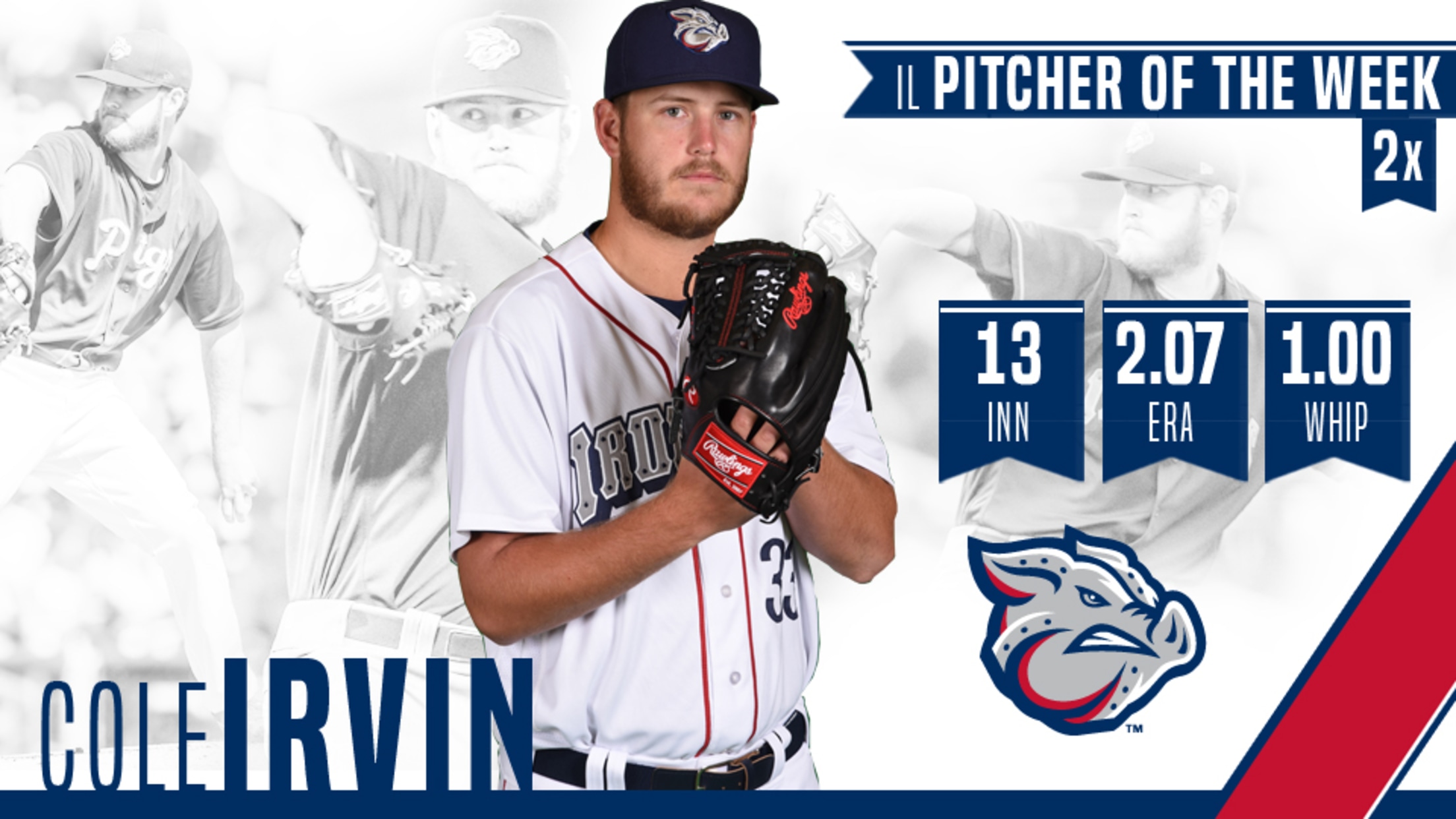 For the week of June 4-10, Irvin finished 2-0 with a 2.07 ERA in a pair of starts. Over 13 innings, he allowed just 10 hits, three earned runs and three walks while registering 11 strikeouts. The former fifth-rounder took a shutout into the sixth inning in both a 4-3 victory at Gwinnett on May 5 as well as in a 6-2 win at Charlotte on May 10.