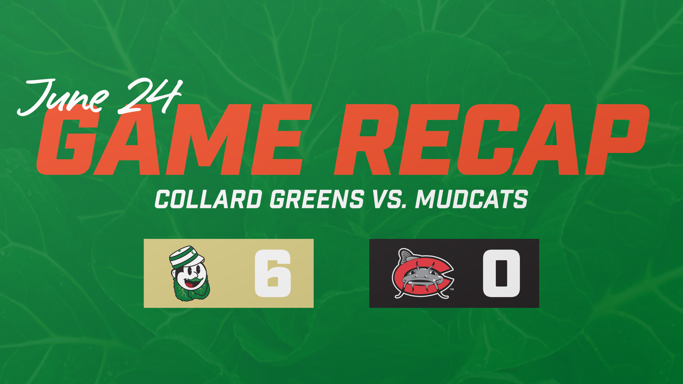The Collard Greens (34-33) and Carolina Mudcats (34-33) continue their series tomorrow, on Saturday, June 25th, with the Greens leading the series (4-0), as the first pitch is set for 5:00 p.m. in Kinston, NC at Grainger Stadium.