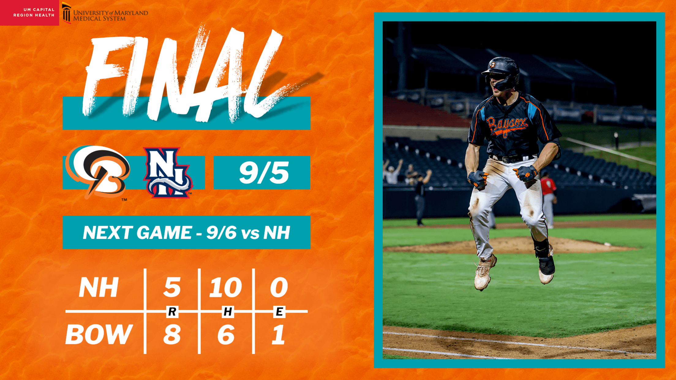 Bowie’s overall record now sits at 62-65 – 31-27 in the second half. The Baysox are set to continue their six-game series with the Fisher Cats on Wednesday night, with first pitch scheduled for 6:35 p.m. from Prince George’s Stadium.