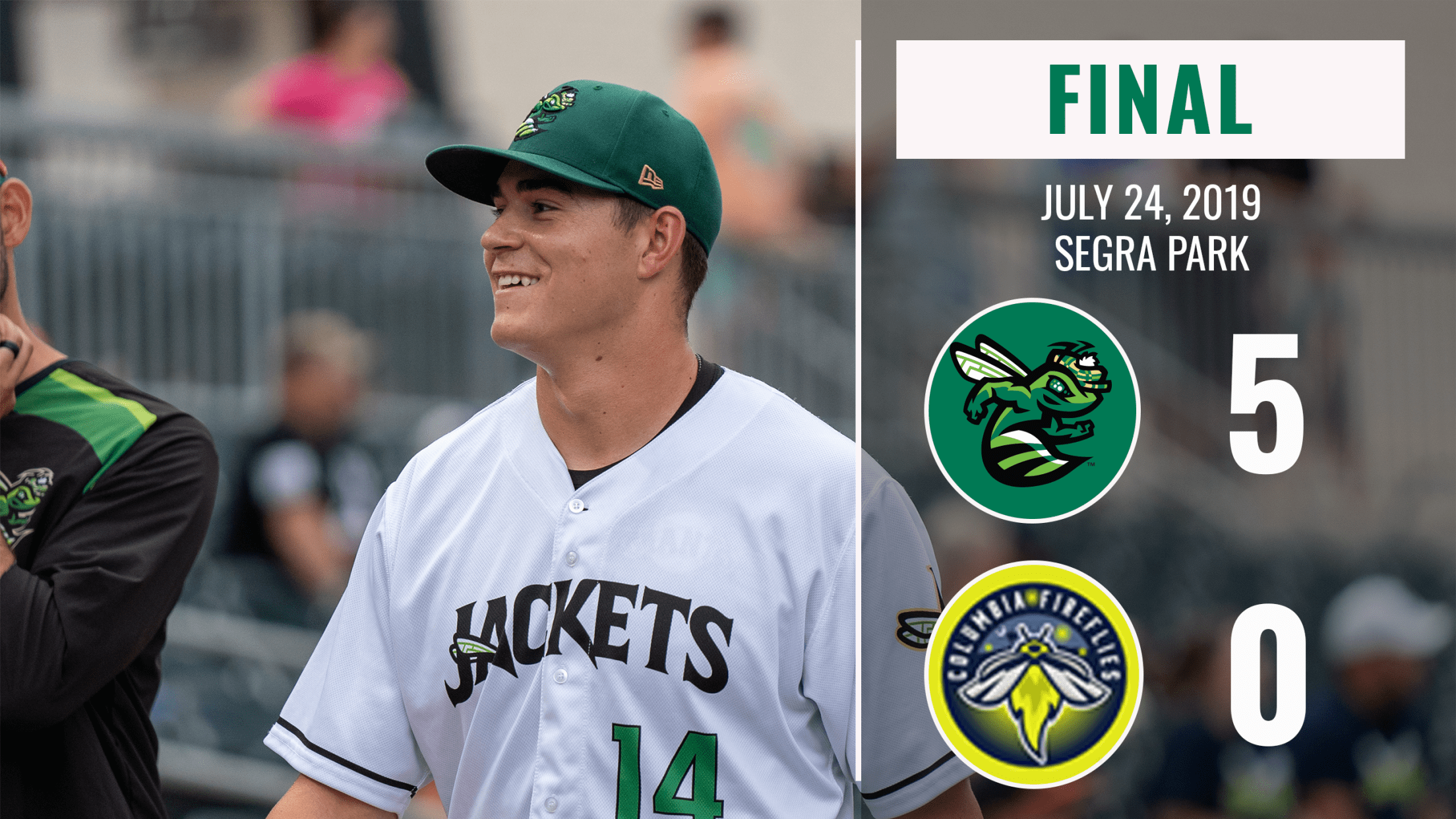COLUMBIA, SOUTH CAROLINA: The Augusta GreenJackets (54-47, 18-15) defeated the Columbia Fireflies (39-60, 15-18) by a final score of 5-0 on Wednesday night. It was the 5th shutout of the year for the Jackets.