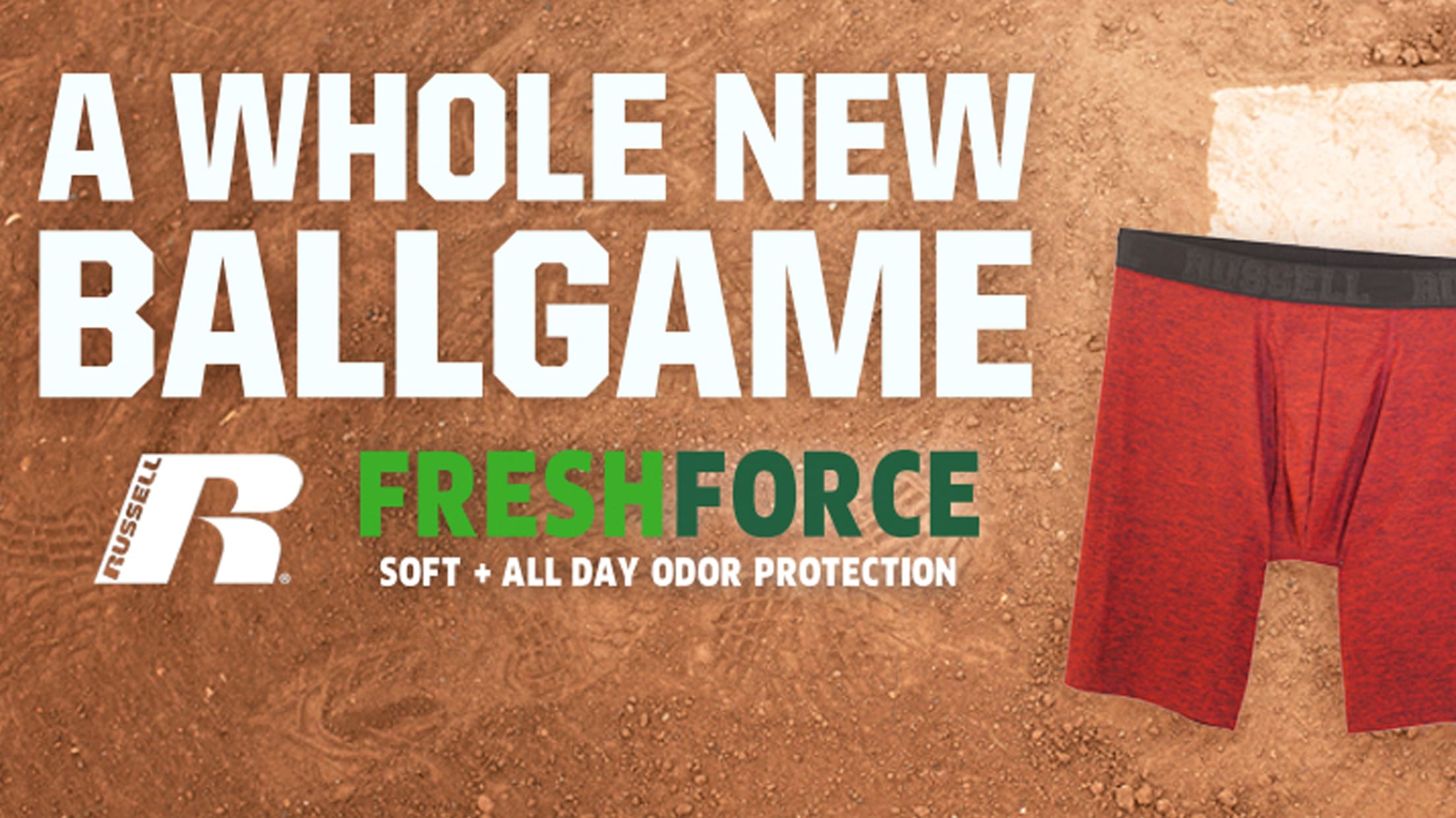 Who knows more about Major League funk than a Minor League mascot? Constantly in 110 degree heat, moving around with 20lbs of alien fur all over its body, Cosmo really can start to bring the funk. Watch his video and see what Cosmo goes through on a daily basis and how Russell Athletics Fresh Force Underwear comes to the rescue.