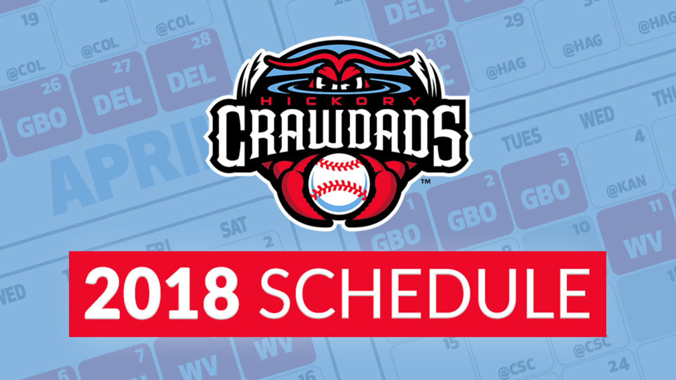 Hickory, NC - The Hickory Crawdads have released their schedule for 2018, with the season scheduled to start on the road on Thursday, April 5th with the home opener set for Thursday, April 12th.