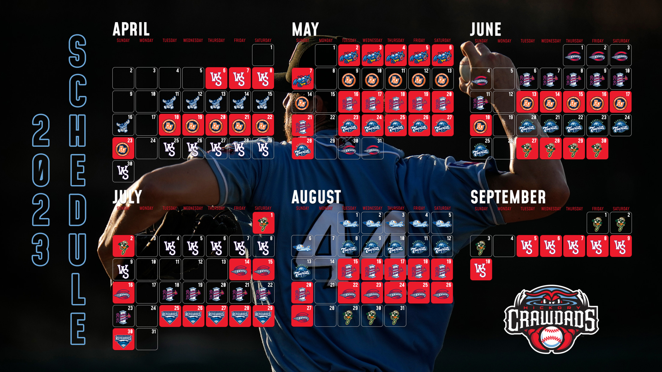 Aside from the two three-game series exceptions, Crawdads home series will once again begin on a Tuesday and will run through Sunday. The Crawdads will not play on Mondays in 2023.