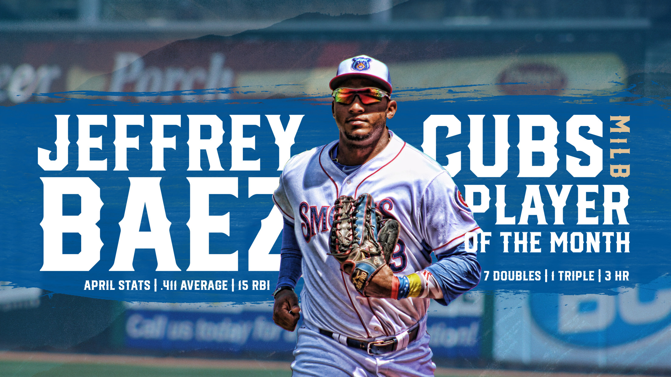 SEVIERVILLE, TN - The Chicago Cubs have named Tennessee Smokies outfielder Jeffrey Baez the organization's minor league player of the month for April.Jeffrey Baez, 24, hit .411 (23-for-56) with seven doubles, one triple, three homers, 15 RBI and seven runs scored in 21 April contests. Among all Cubs minor leaguers, he
