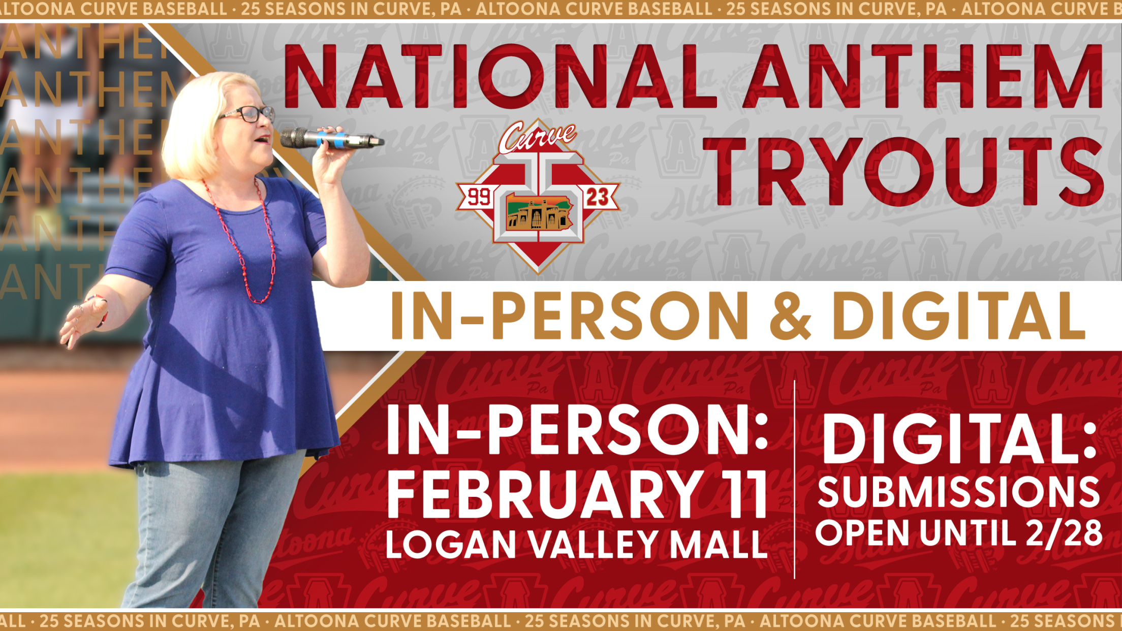 CURVE, PA – The Altoona Curve are excited to host auditions for National Anthem and God Bless America performers on Saturday, February 11th at the Logan Valley Mall. Vocalists, musicians, and groups of all ages are invited to audition.