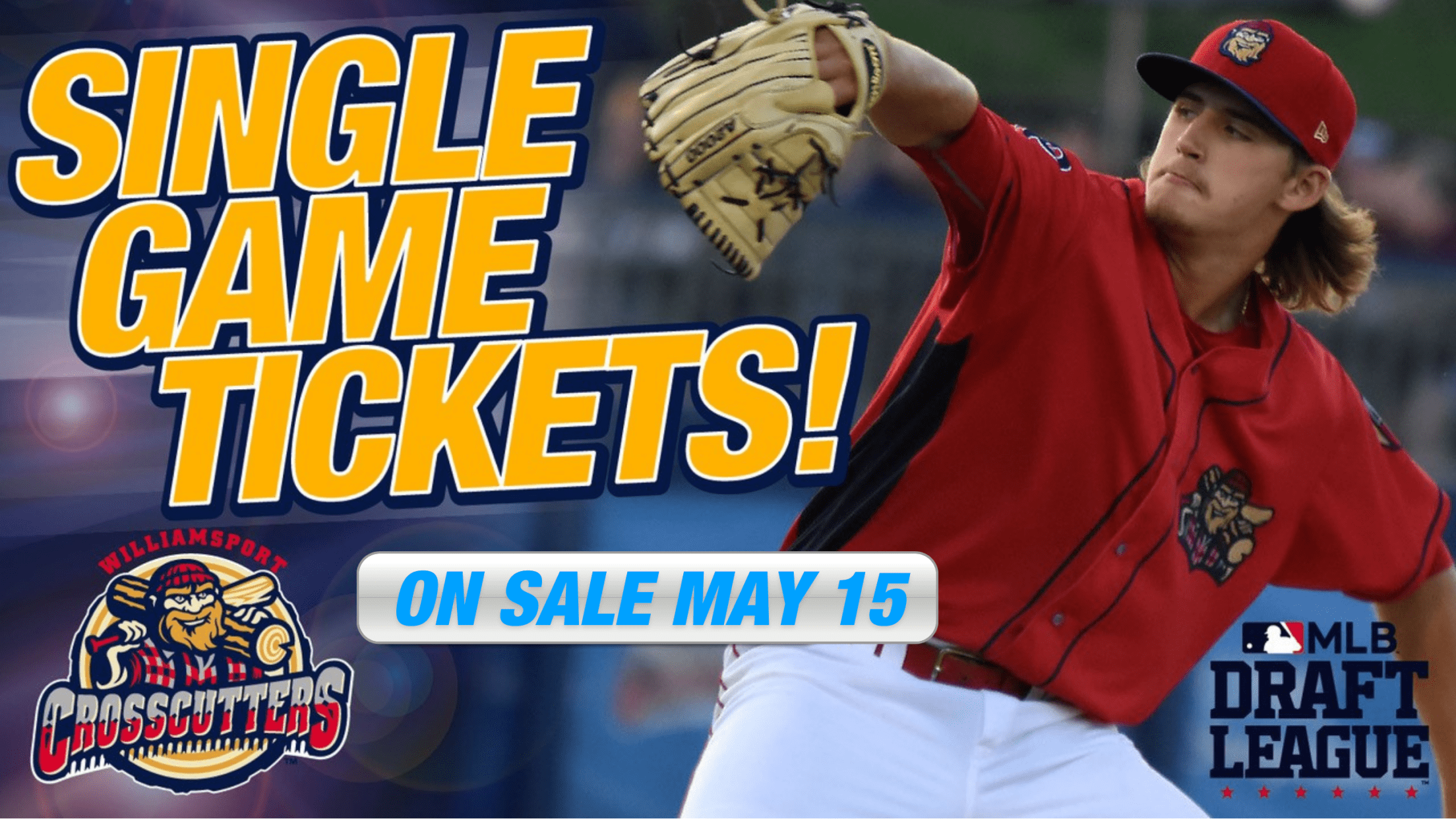 Williamsport Crosscutters single game tickets for opening night and all home games will go on sale Saturday, May 15 at 10am for the inaugural season in the MLB Draft League.