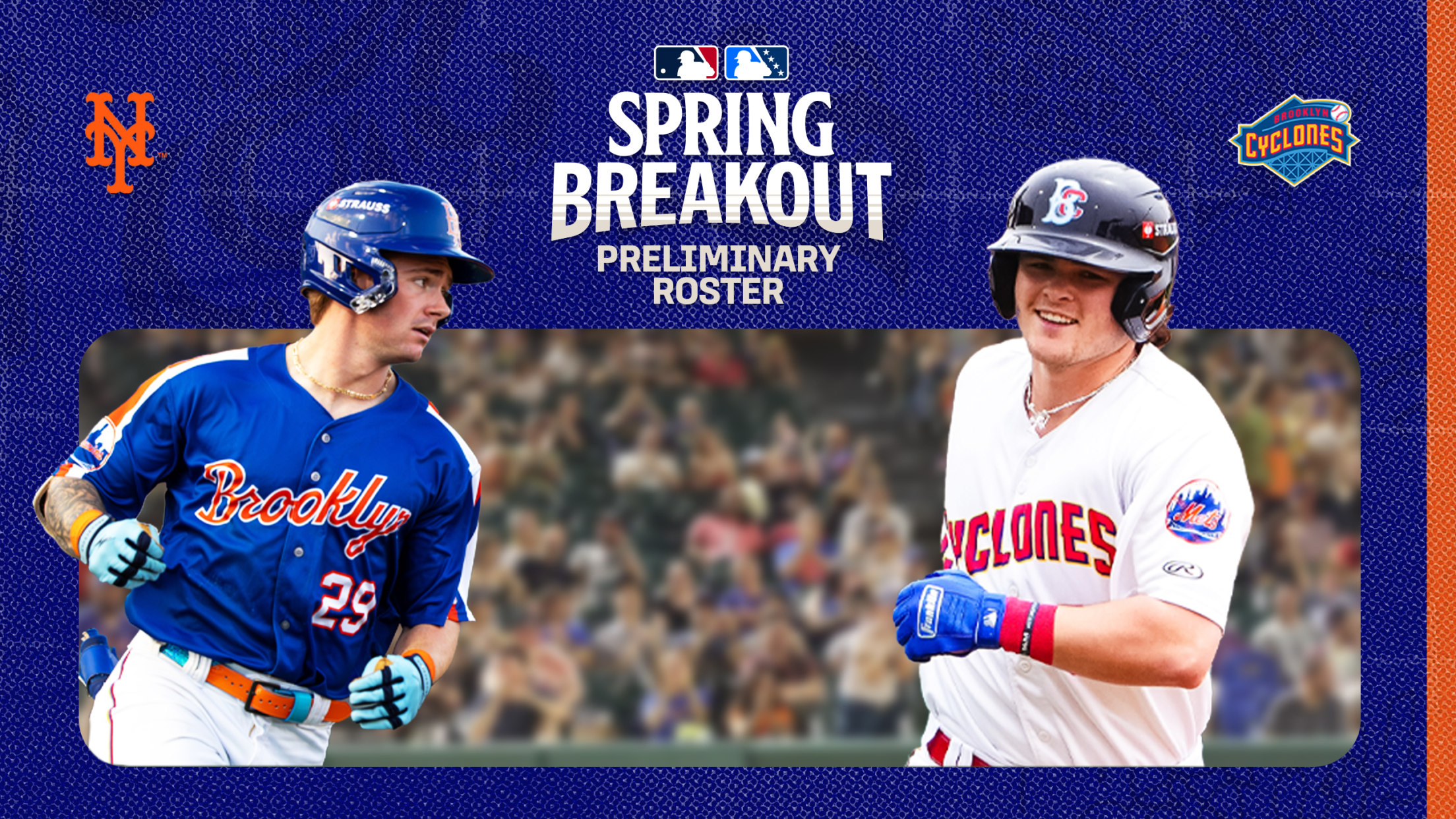 CONEY ISLAND, BROOKLYN, N.Y. (March 5, 2026) — The New York Mets, in collaboration with Major League Baseball, have released their preliminary roster for the third-annual Spring Breakout Game to be held on Thursday, March 19, at 7:10 p.m. from Clover Park in Port St. Lucie, Fla. 26 Brooklyn Cyclones