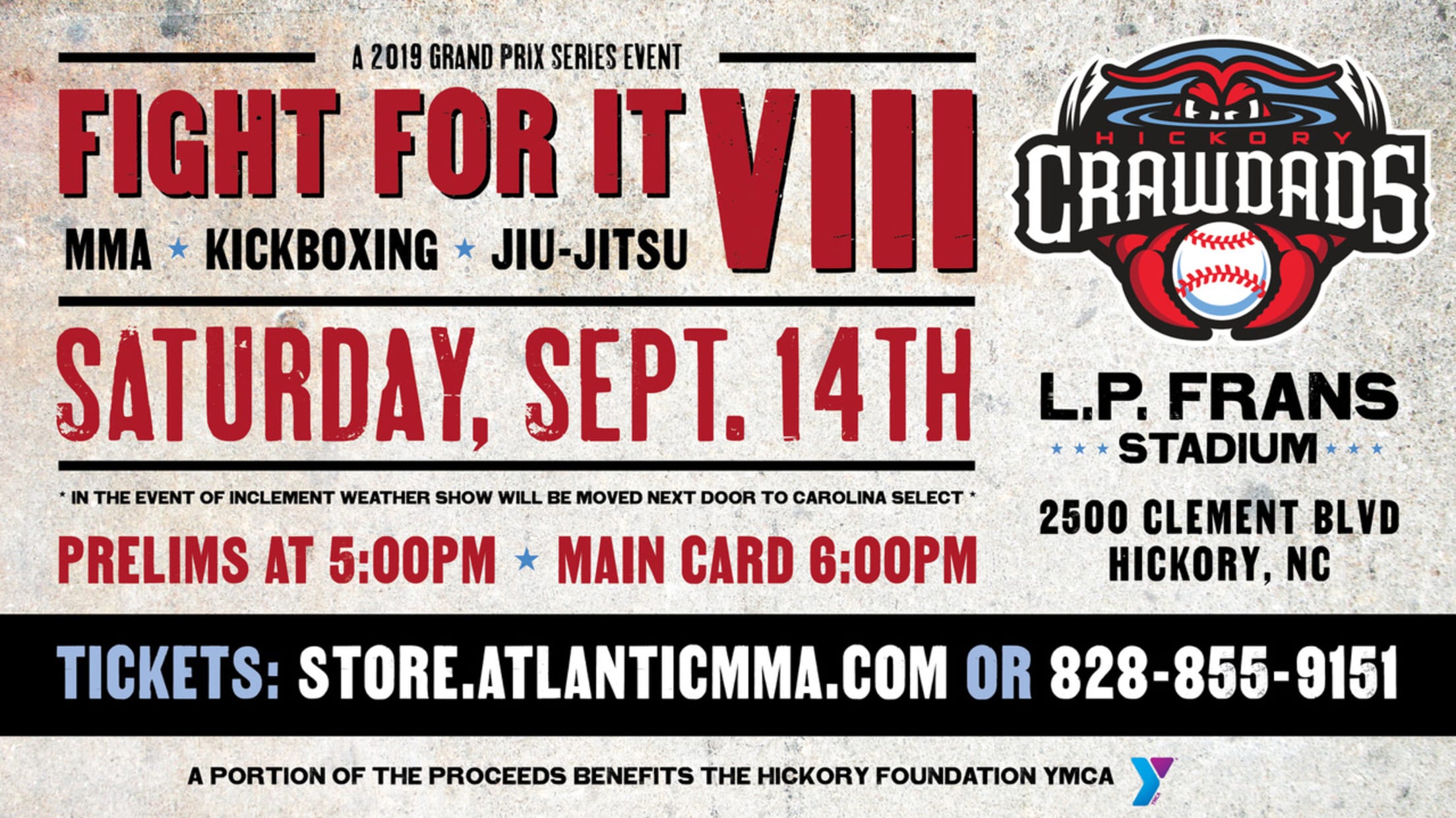 Hickory, NC- The Hickory Crawdads are excited to announce that LP Frans Stadium will play host to the 2019 Grand Prix Series Event, "Fight for It VIII." The event, which is set for Saturday, September 14th, will showcase MMA, Kickboxing, and Jiu-Jitsu.