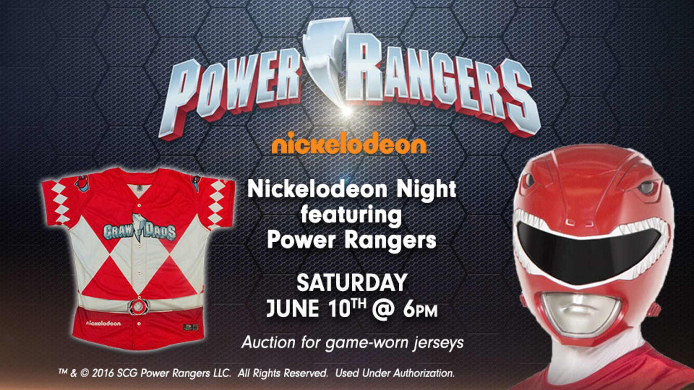 'Dads Announce Nickelodeon Night Ft. Power Rangers Theme night includes auction with jerseys inspired by the hit TV series By Crystal Lin March 24, 2017 Facebook Share X Share Email Copy Link [Empty Body] [Empty Body] Read More: Hickory Crawdads