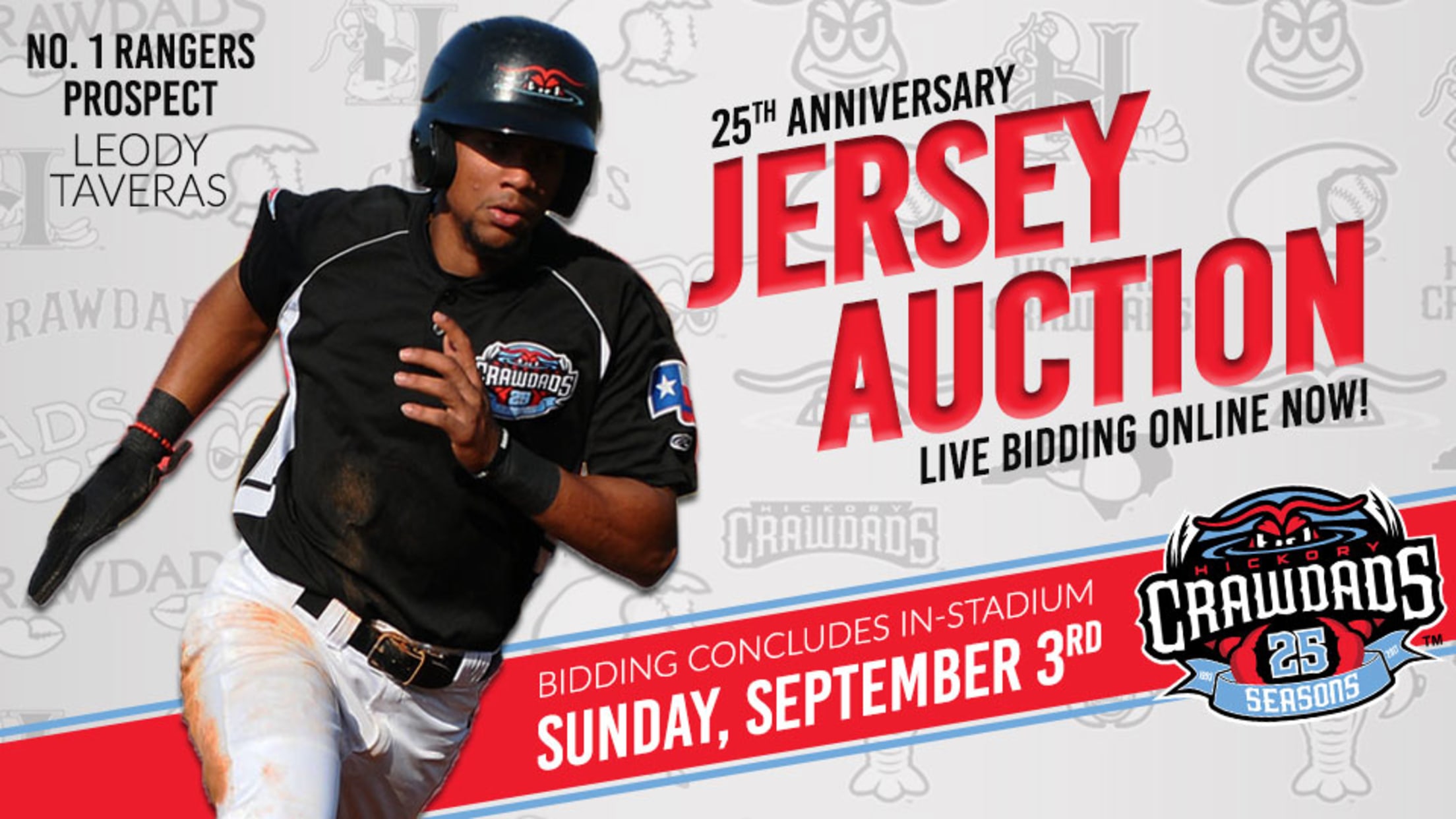 Hickory, NC- The Hickory Crawdads are auctioning off their 25th anniversary season jerseys. The game-used uniforms have been worn by every player to appear with the 'Dads in 2017, including top prospects Leody Taveras, Yanio Perez, Kyle Cody and more.