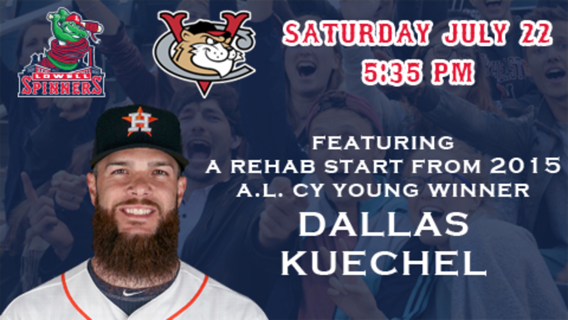 The Lowell Spinners, short season affiliate of the Boston Red Sox, will be hosting one of the best pitchers in baseball on a rehab assignment on Saturday night. Dallas Kuechel, the 2015 American League Cy Young winner, will start that game for the Tri-City ValleyCats, short season affiliate of the Houston Astros.