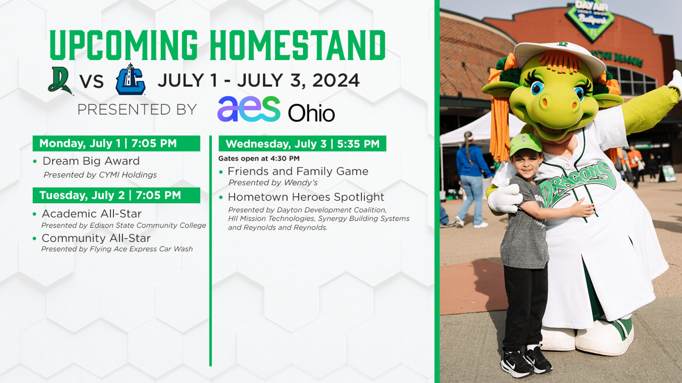 Dayton Dragons Upcoming Homestand Preview Presented by AES Ohio