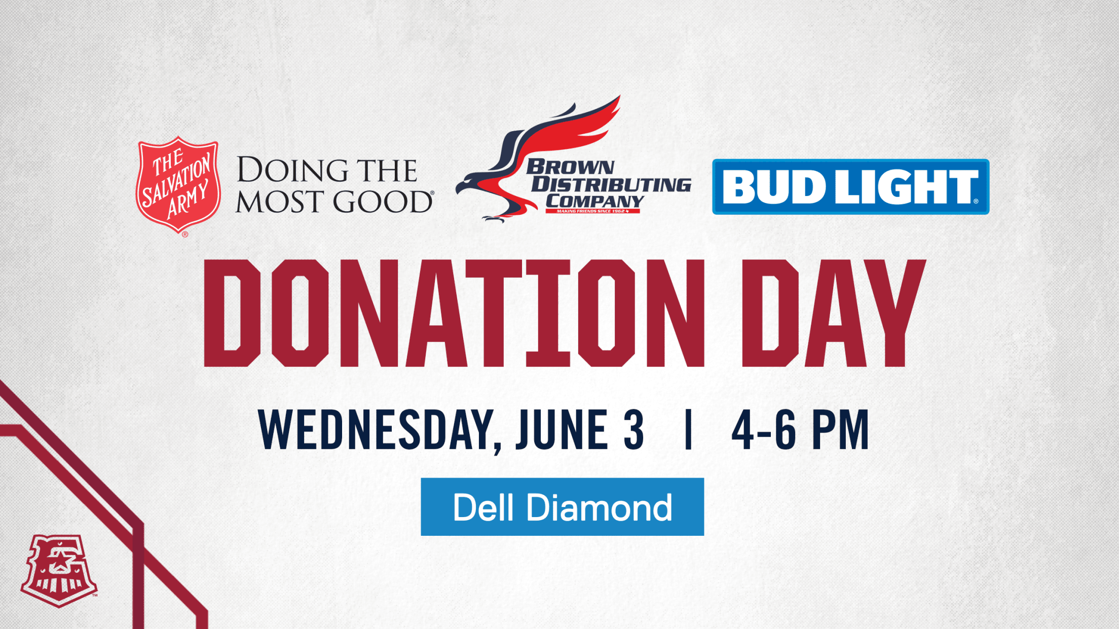ROUND ROCK, Texas – The Round Rock Express and Brown Distributing, Central Texas’ local Anheuser-Busch distributor, are teaming up to host a donation drive at Dell Diamond to benefit The Salvation Army. The drive is set for Wednesday, June 3 from 4:00 to 6:00 p.m. in the Suite Parking Lot