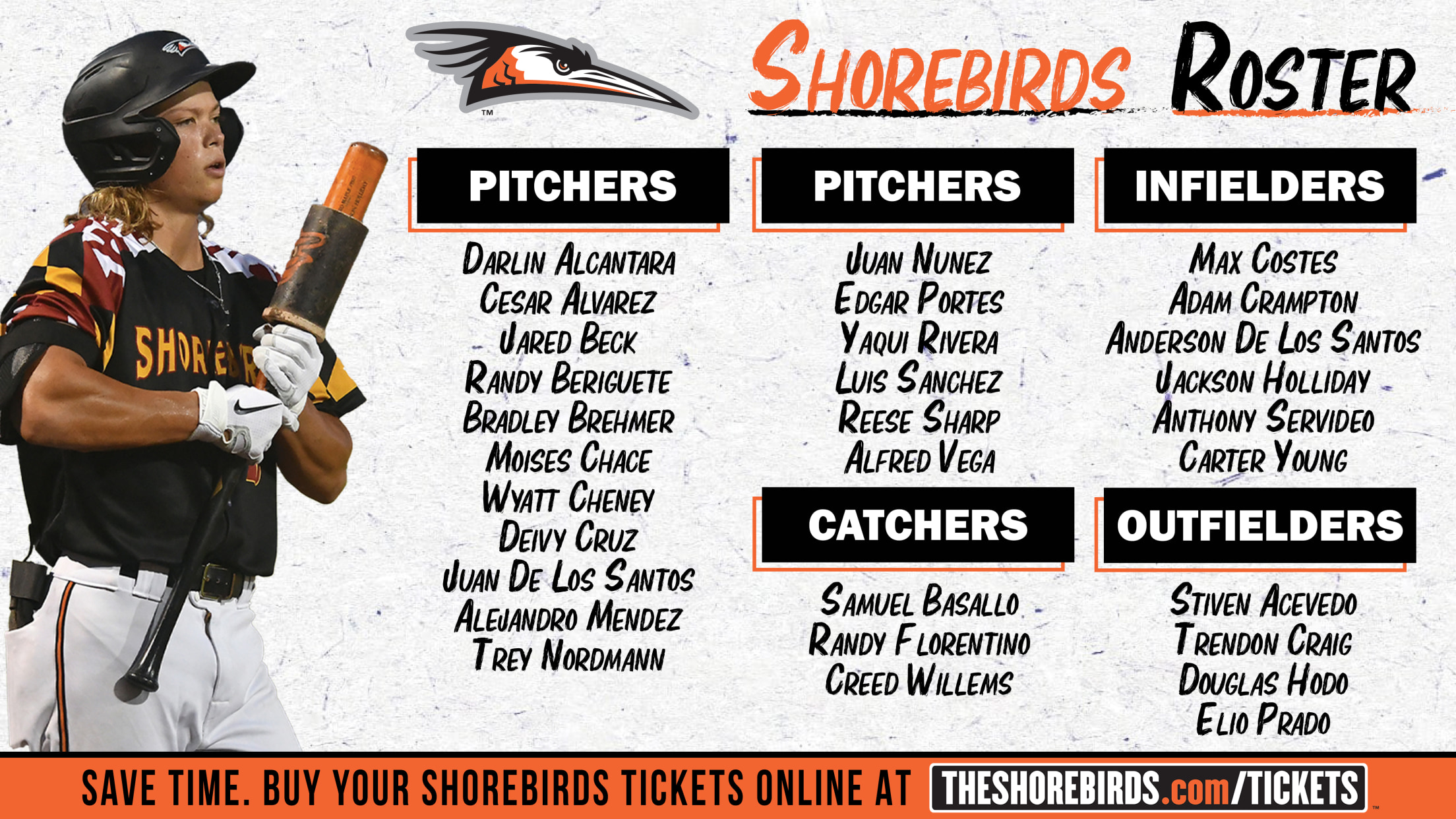 Salisbury, MD: The Delmarva Shorebirds, in conjunction with the Baltimore Orioles have officially announced the team’s Opening Day Roster for 2023. The roster is highlighted by three of the Orioles’ top-30 prospects according to MLB Pipeline, led by the first overall pick of the 2022 Draft, Jackson Holliday who is ranked as the No. 3 prospect in Baltimore’s system and No. 11 in all of MiLB.